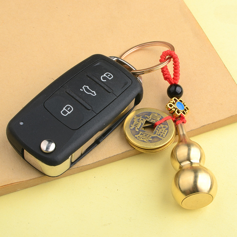 红绳款葫芦钥匙扣 黄铜葫芦红绳五帝铜钱编绳挂件