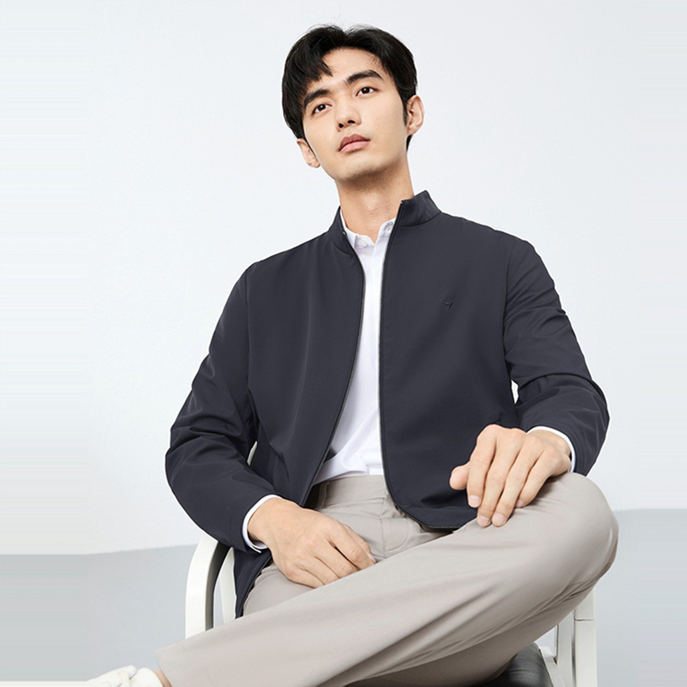 柒牌男装夹克2025春季立领男士商务休闲上衣暗提花干部茄克衫外套