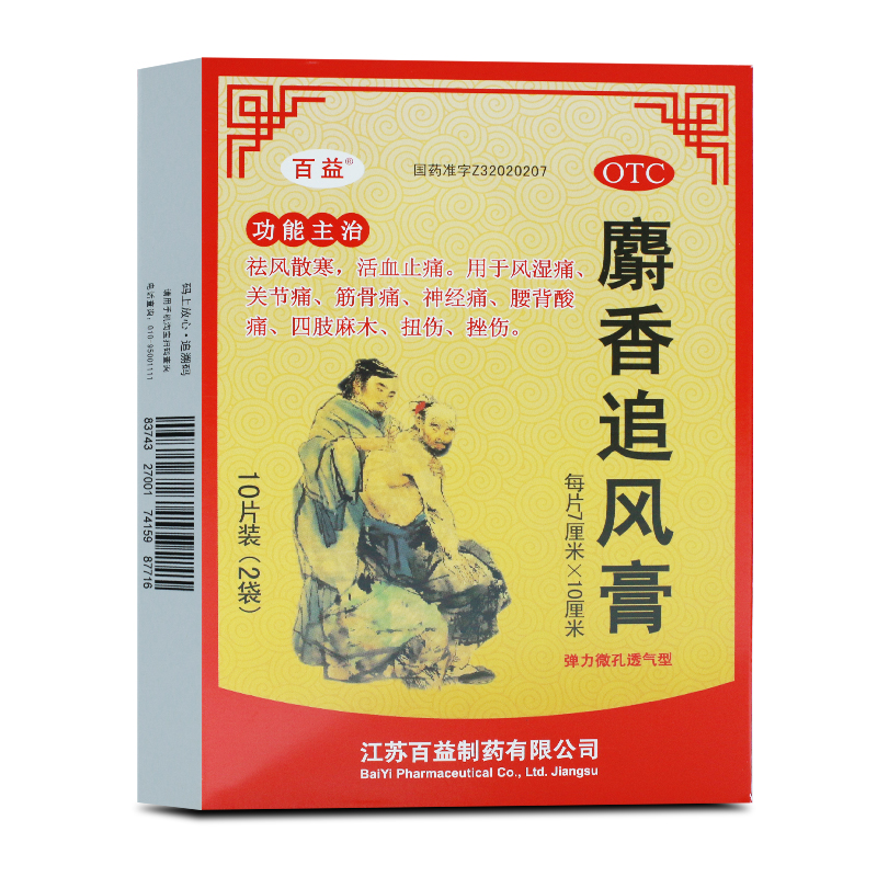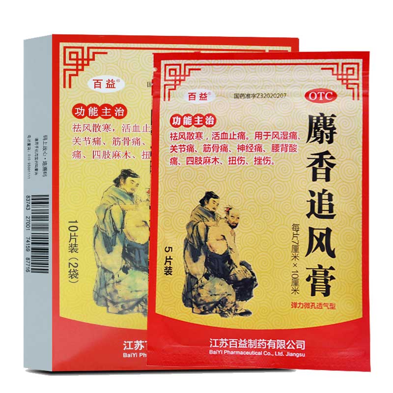 正品百益麝香追风膏10贴风湿关节痛筋骨痛神经痛腰背酸痛扭伤挫伤