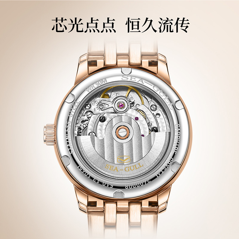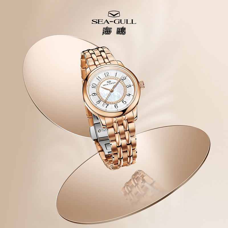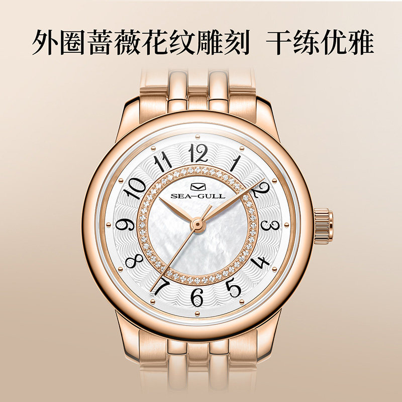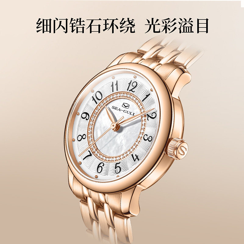 海鸥表女士手表轻奢时尚镶钻贝母复古绽放女士机械腕表1065L