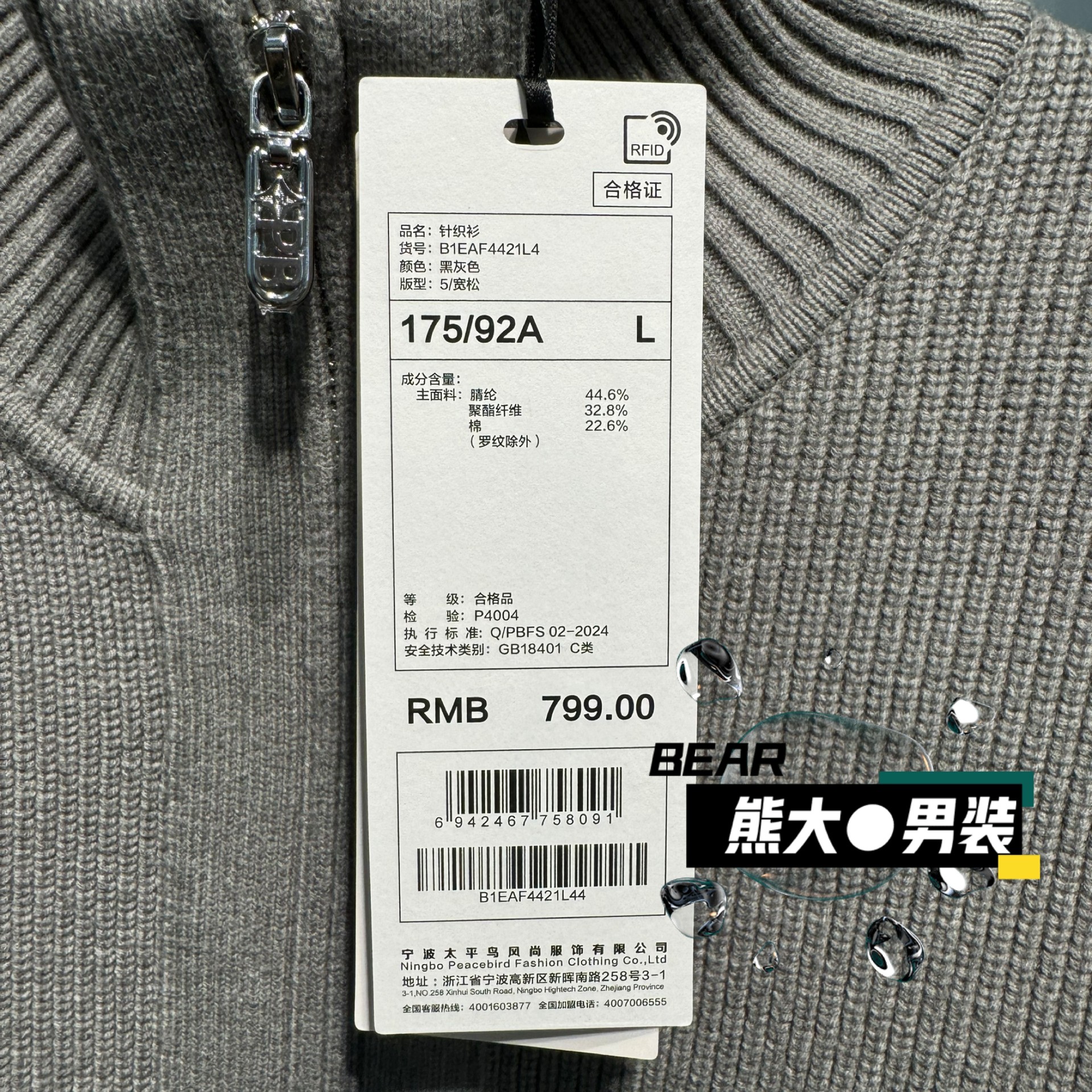 B1EAF4421太平鸟男装2025冬季新款休闲百搭竖条肌理宽松针织衫799