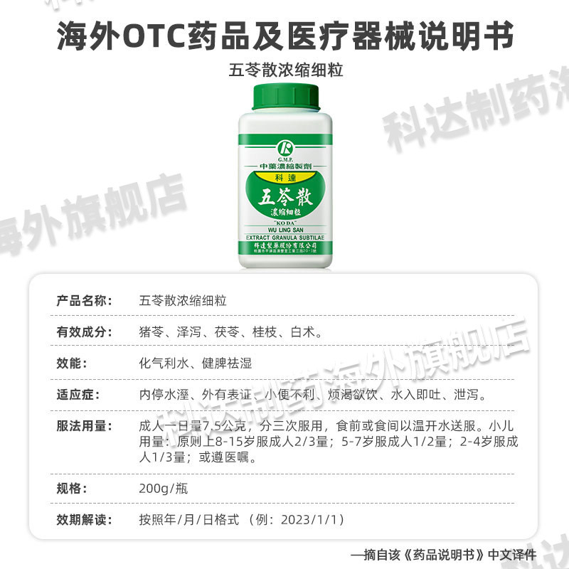 科达制药五苓散颗粒健脾祛湿轻利尿去水肿中成药旗舰店同仁堂