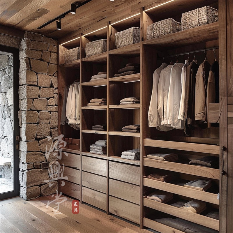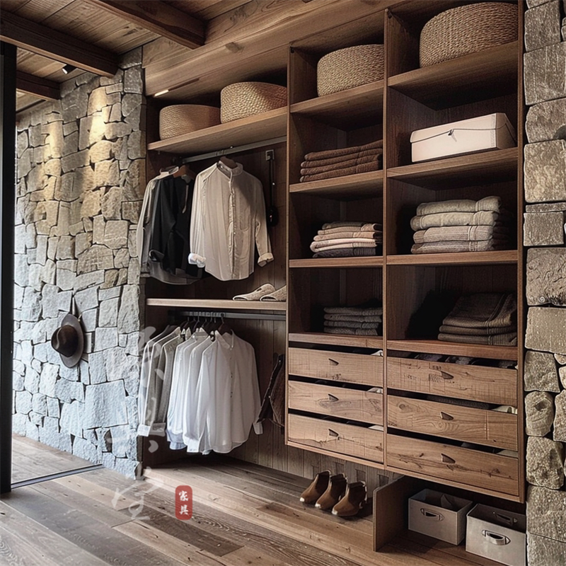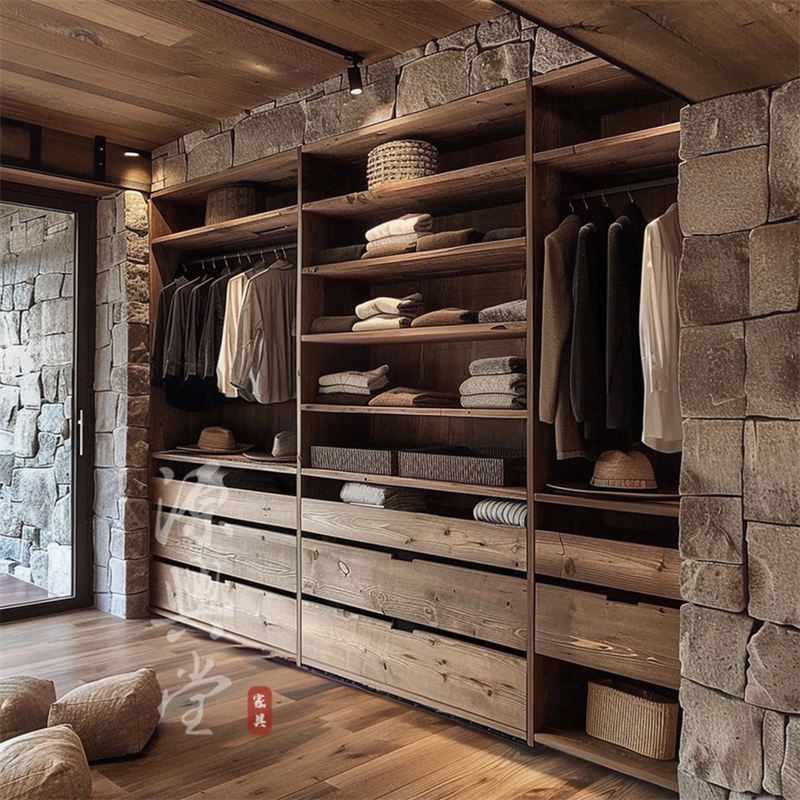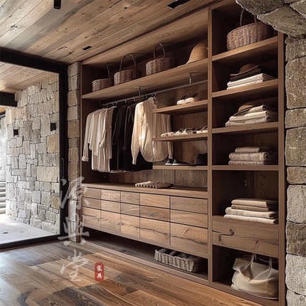 全屋定制开放式收纳衣柜 侘寂风实木定制衣柜 卧室整体衣帽间定制