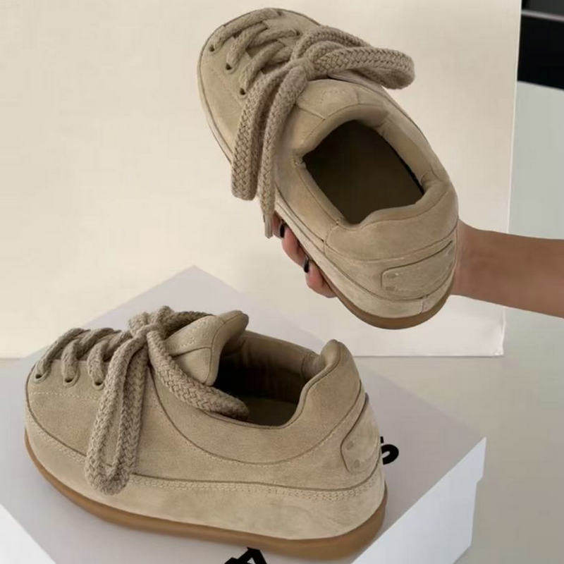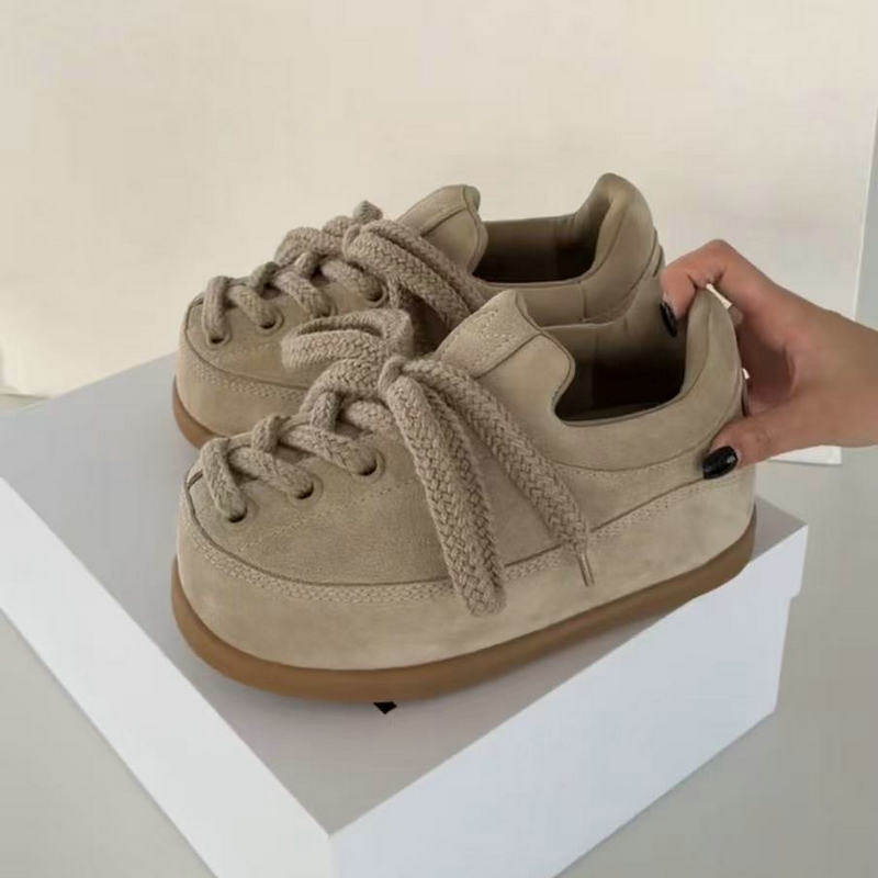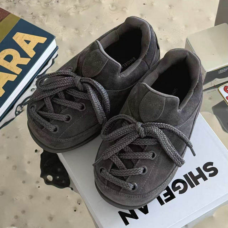 诗歌兰女鞋2026新款真皮厚底大棉单鞋圆头复古丑萌时尚休闲面包鞋