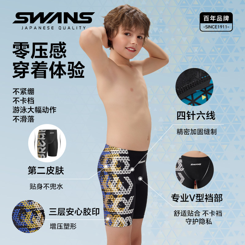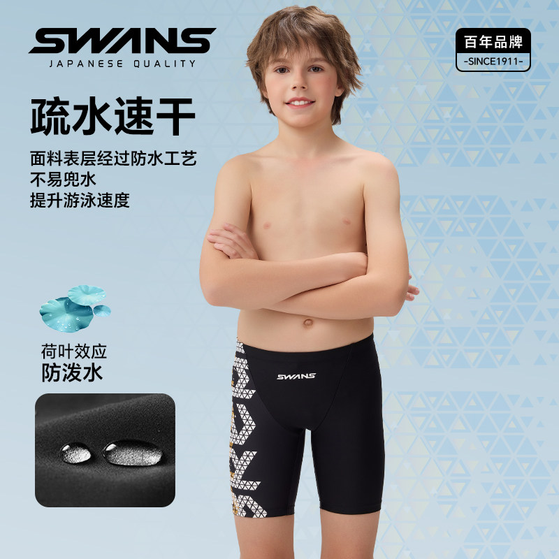 swans儿童泳裤男孩中大童五分速干2025新款男童专业训练游泳泳衣