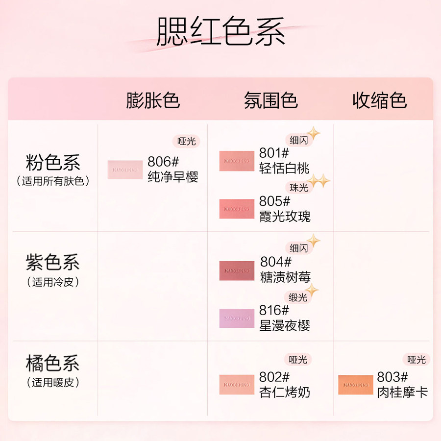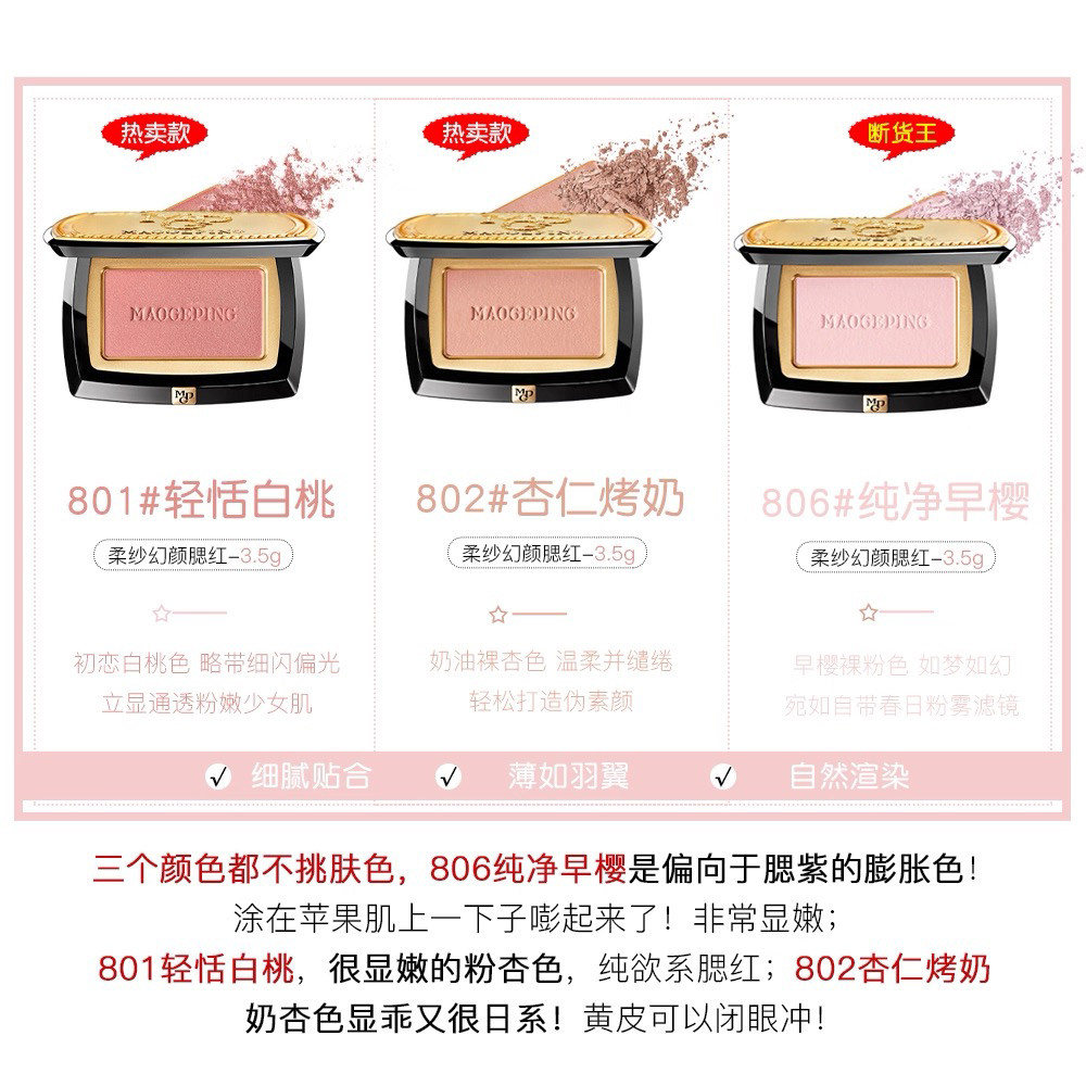 腮红断货王!毛戈平腮红盘806/801/802显嫩膨胀色腮紫收缩渐变色