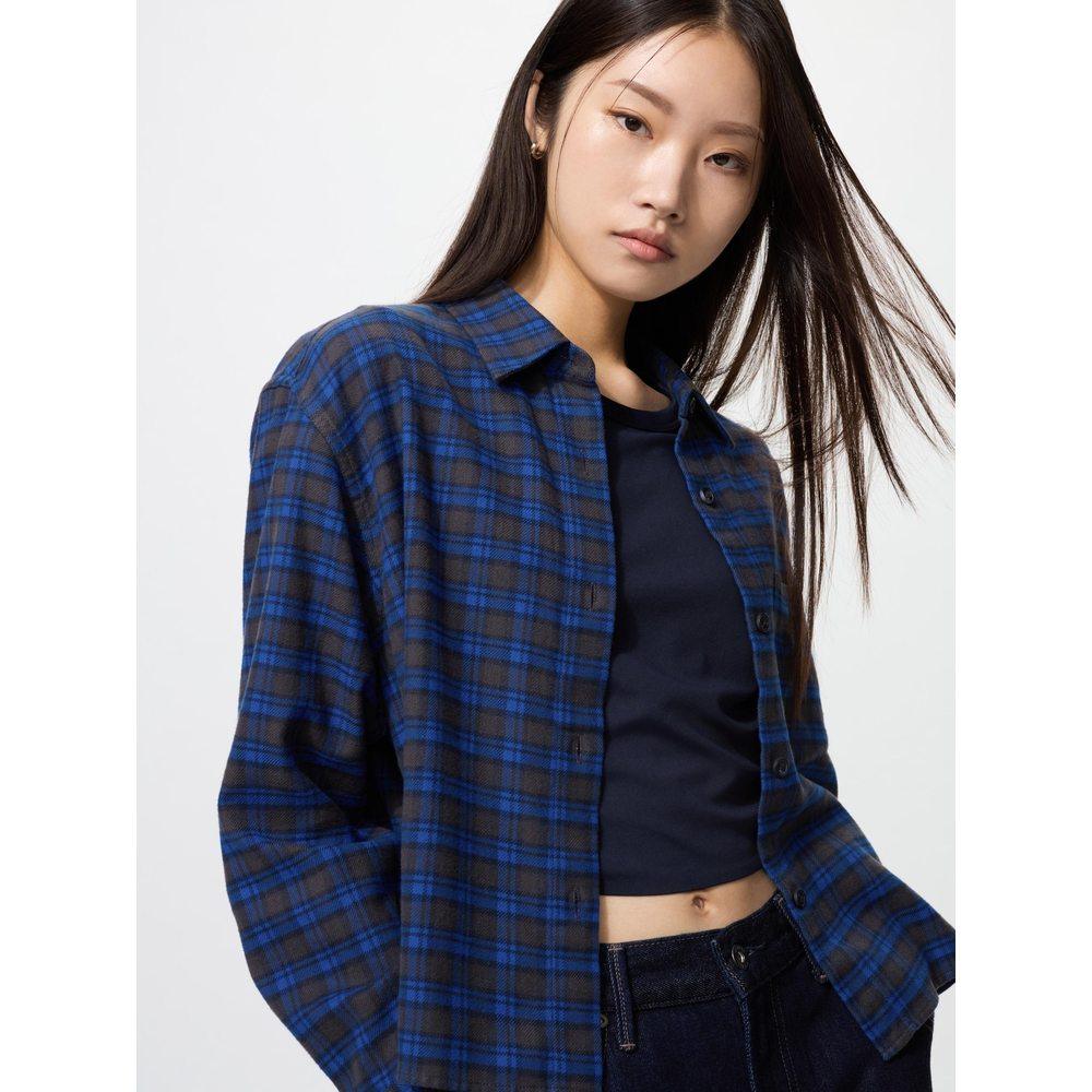 日潮跑腿UNIQLO优衣库 法兰绒宽松衬衫 65 BLUE WOMEN XS 479086