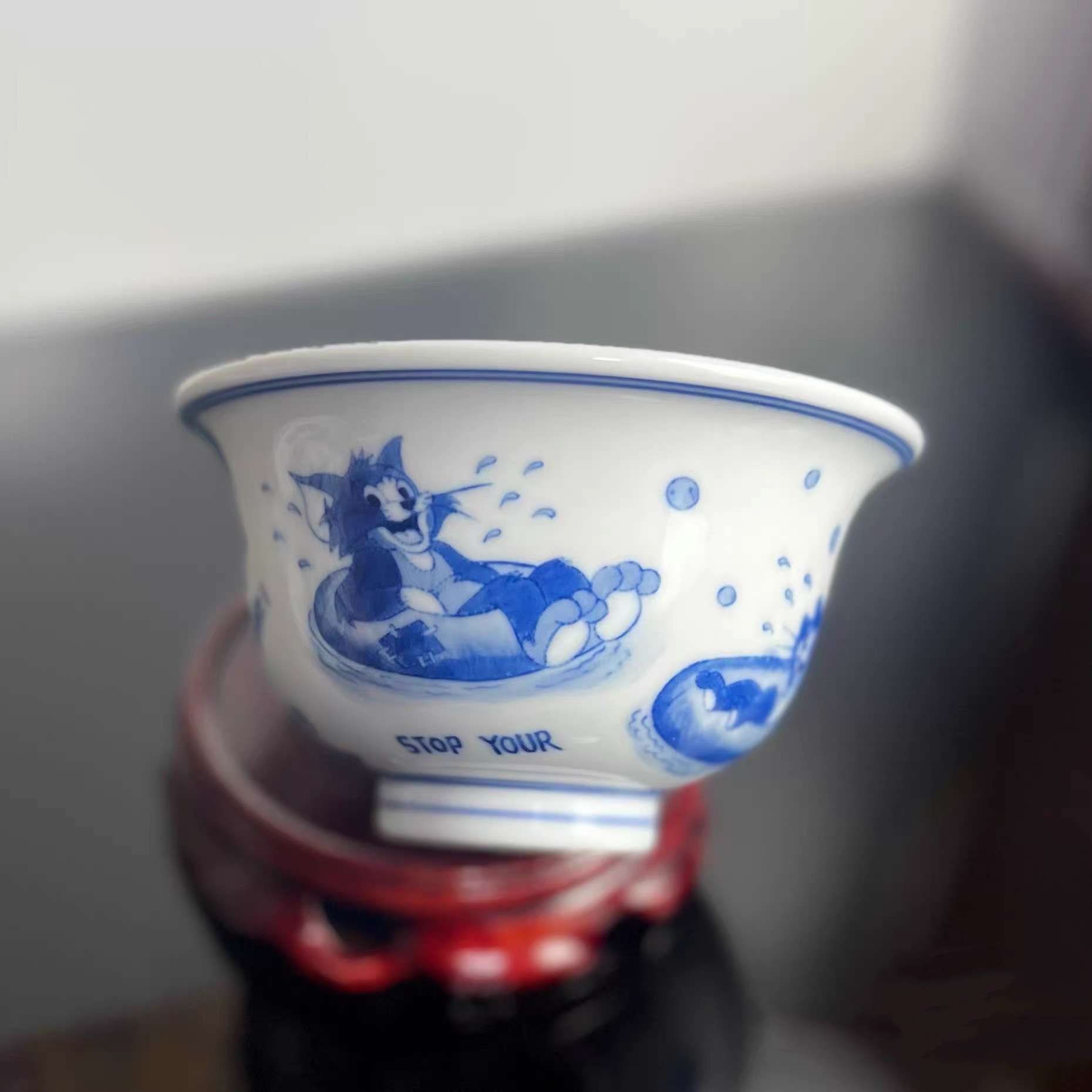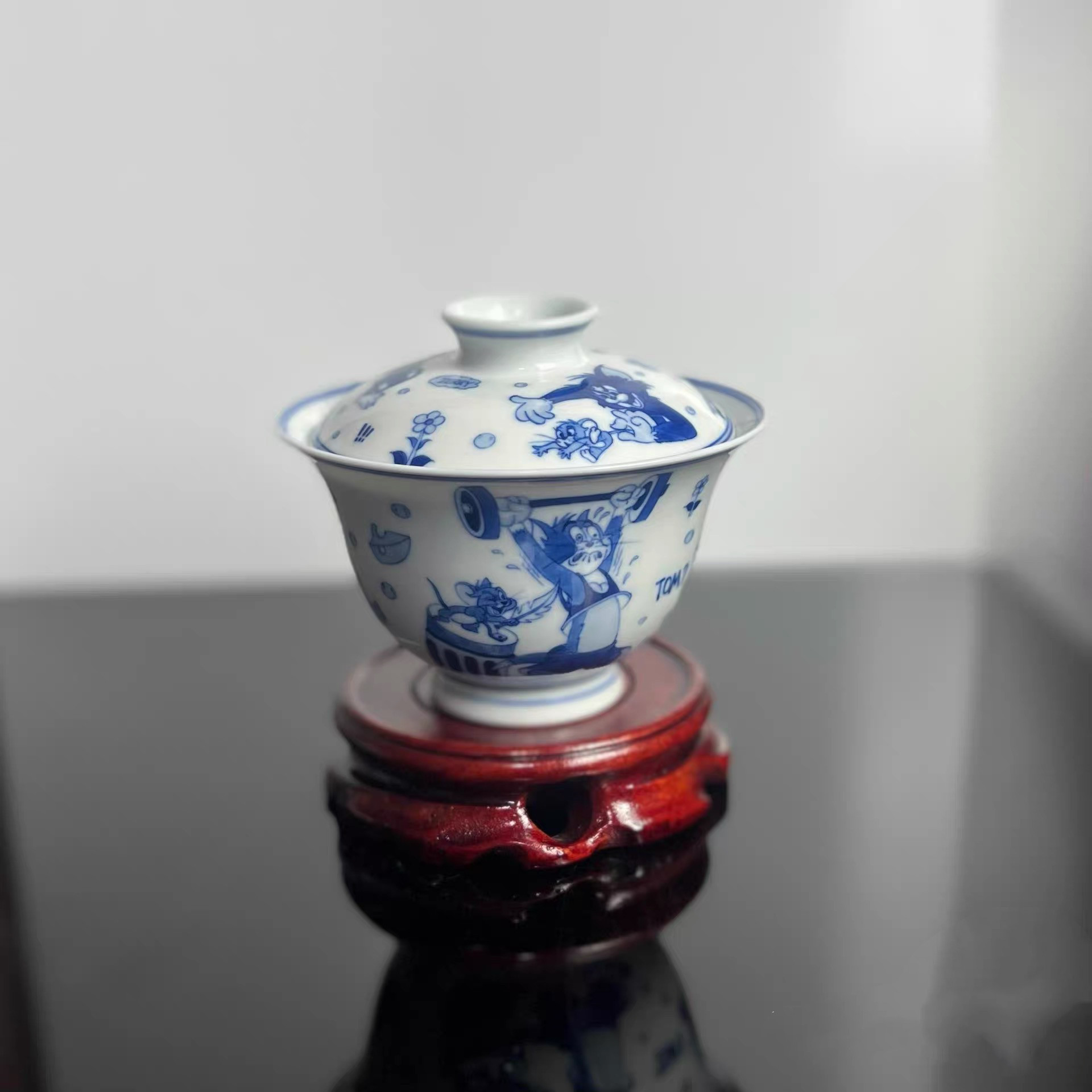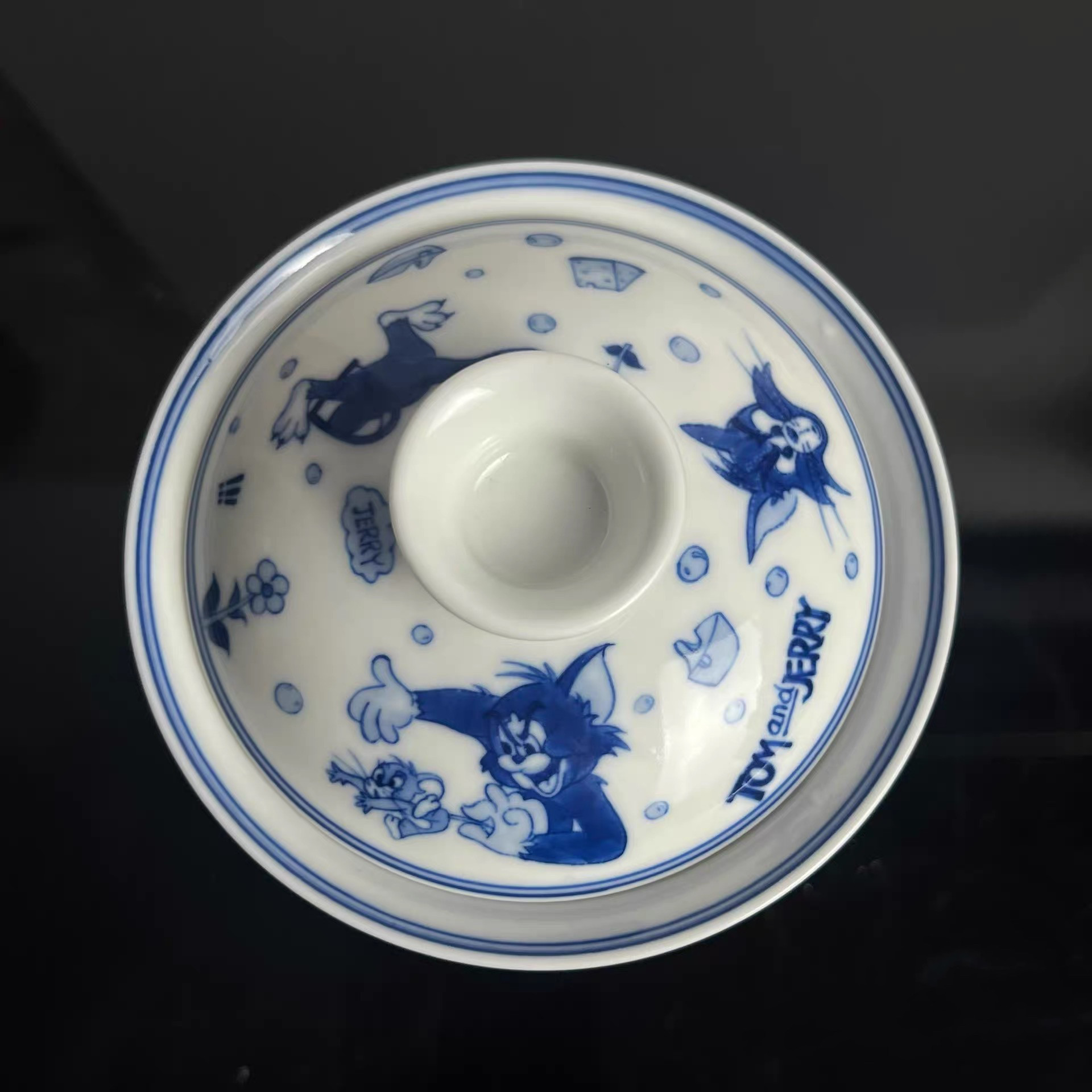猫和老鼠可爱卡通陶瓷青花三才盖碗茶杯茶具大容量茶碗