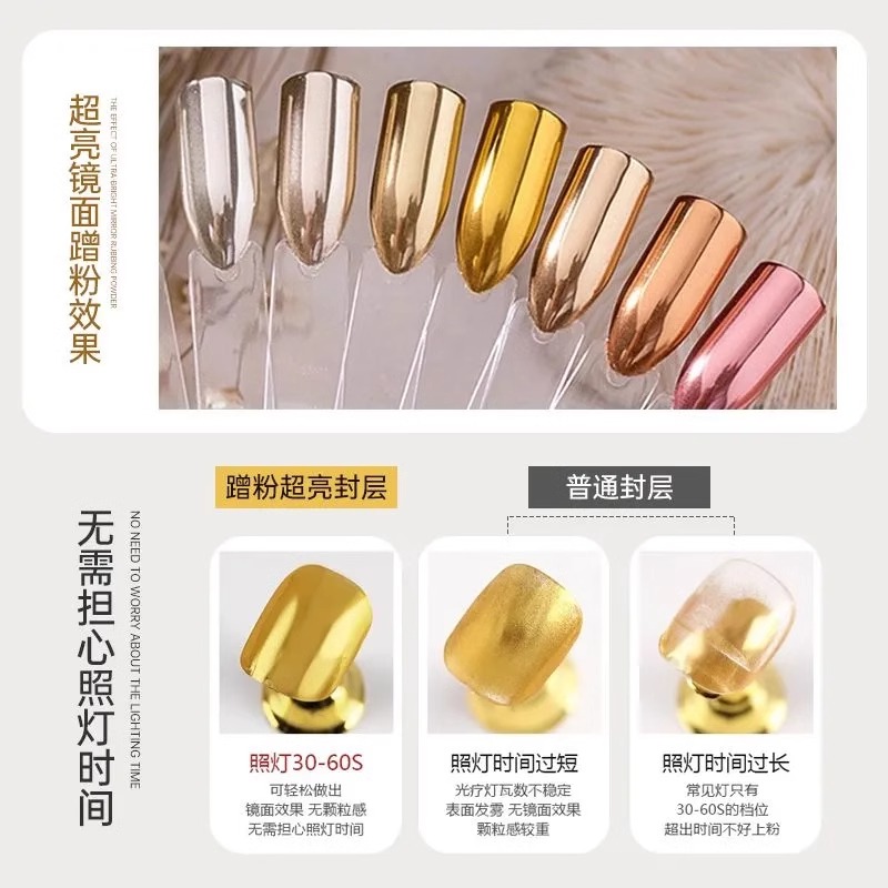 魔镜粉专用蹭粉封层超亮镀晶钢化封层底胶磨砂加固美甲店专用套装