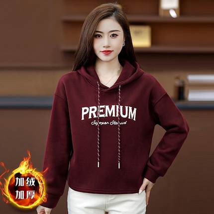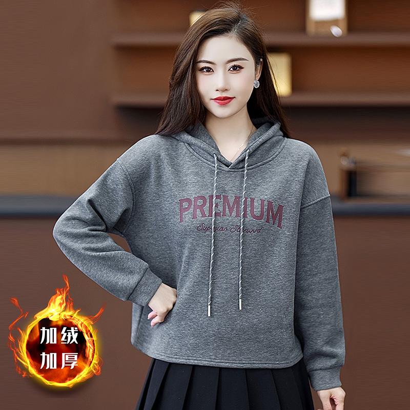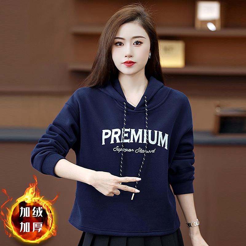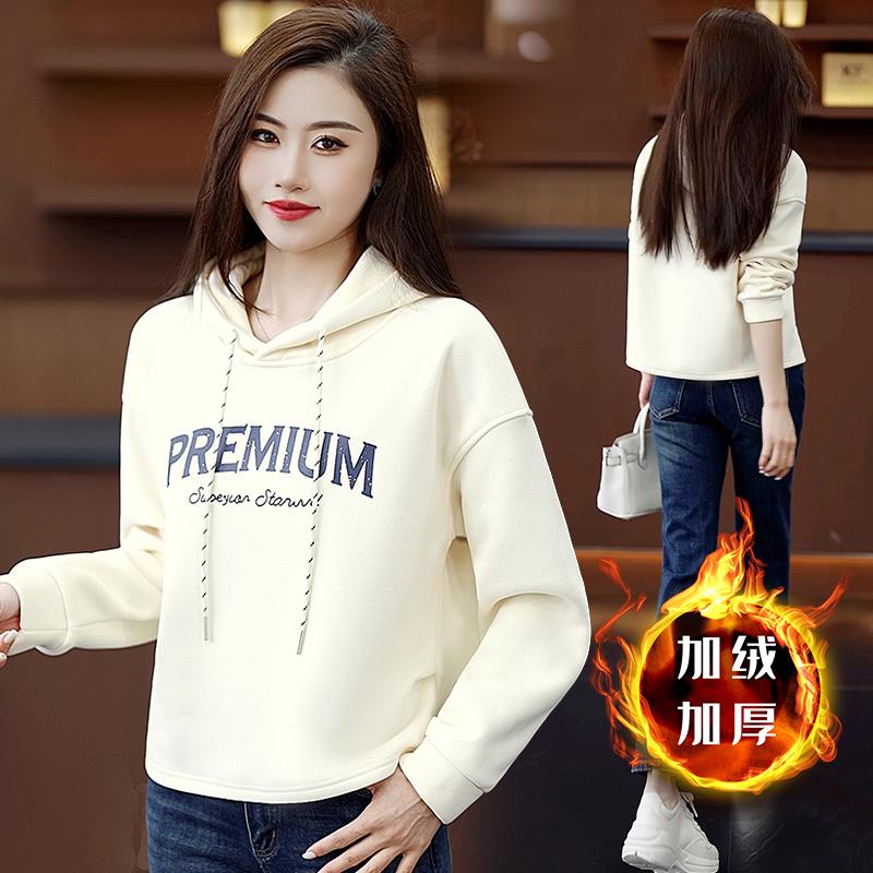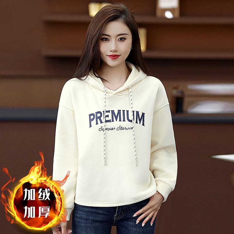 时尚连帽套头卫衣女2024年新款秋冬加绒加厚上衣韩版宽松显瘦外套