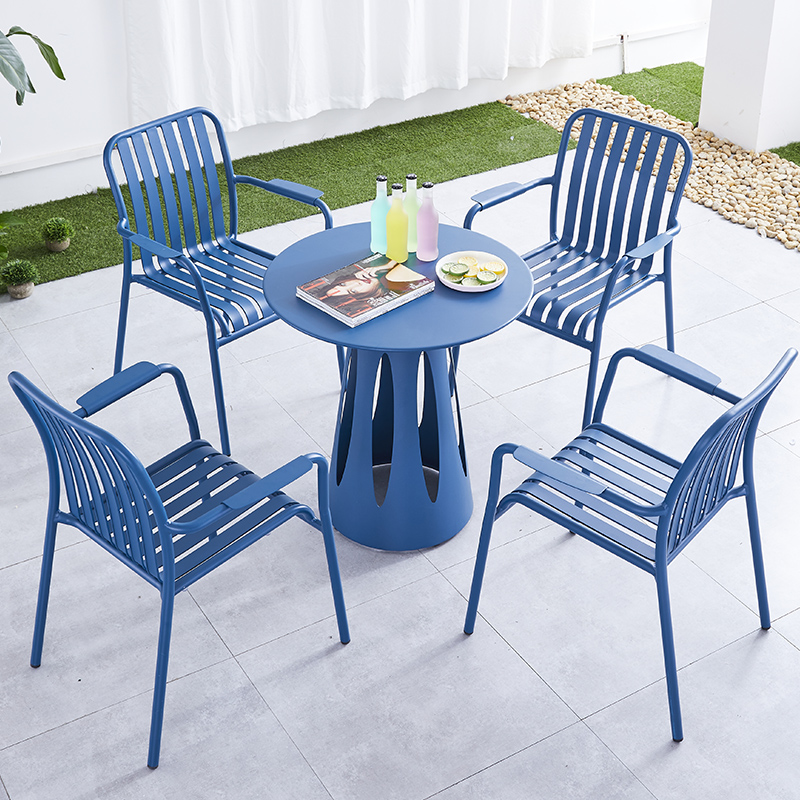 北欧户外餐桌椅组合彩色铝合金咖啡奶茶甜品店室外休闲区外摆家具