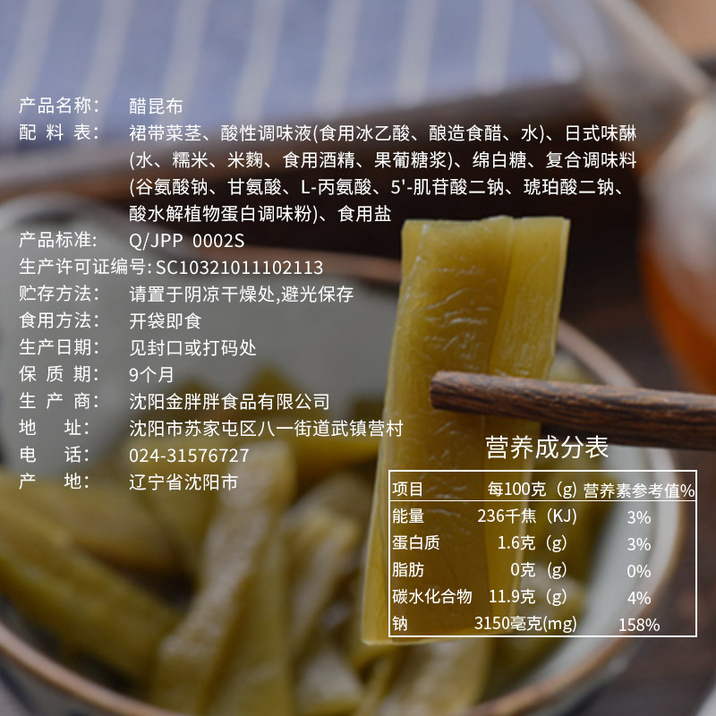 食彩之国醋昆布醋味茎0低脂海带小零食卡解馋开袋即食胃银魂神乐