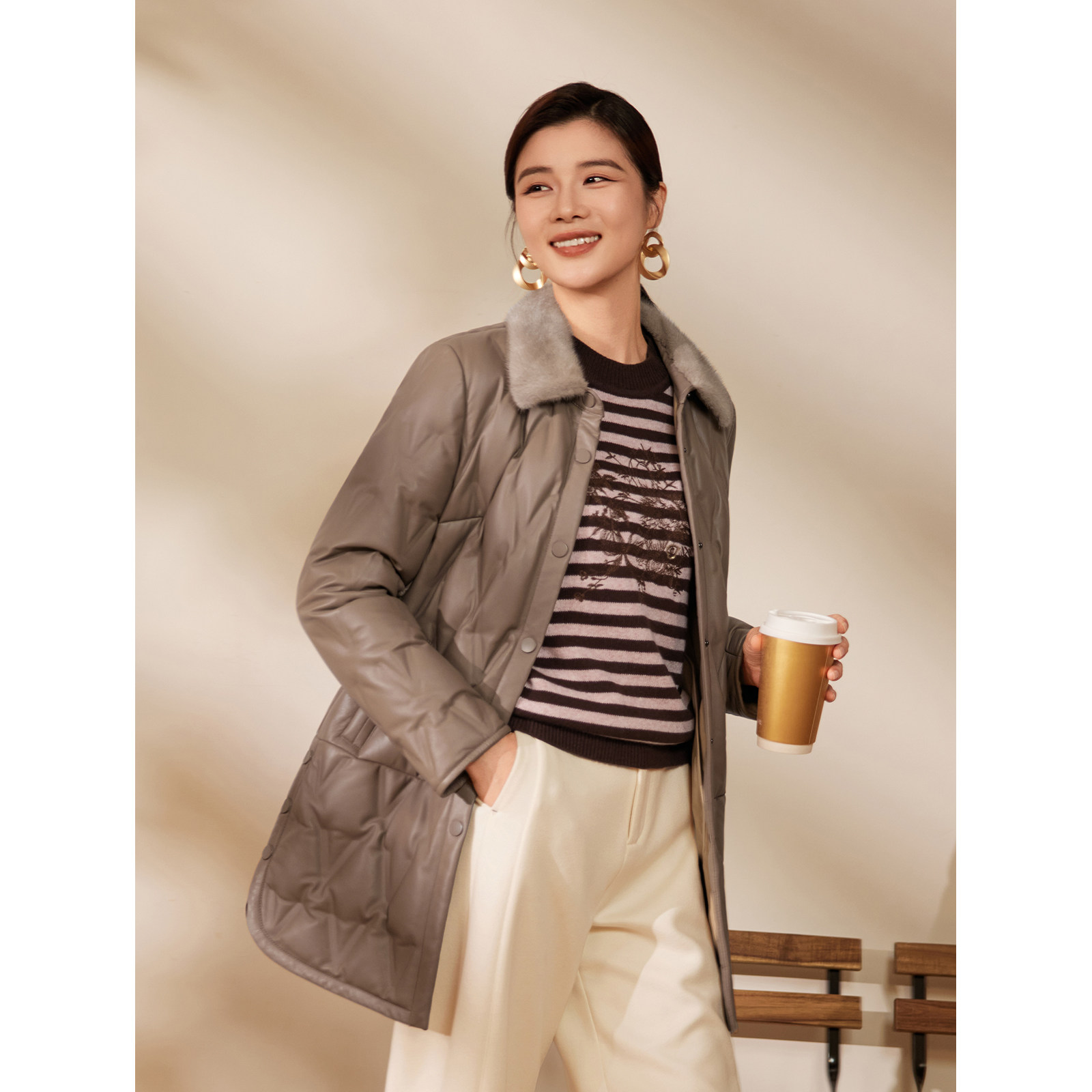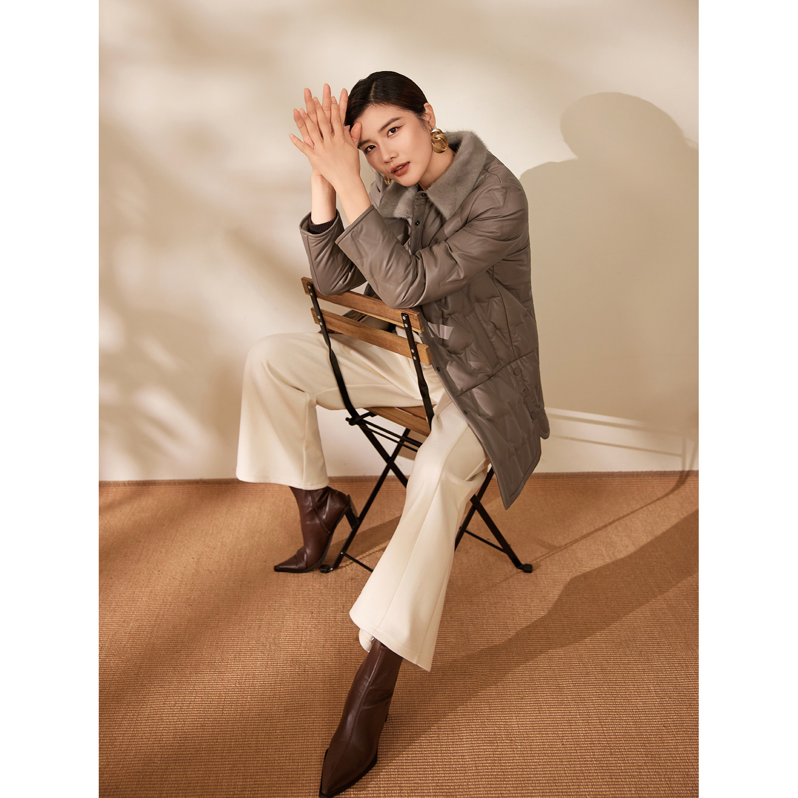 【水貂毛皮翻领】BBLLUUEE粉蓝衣橱2025冬装衬衫式绵羊皮羽绒服女