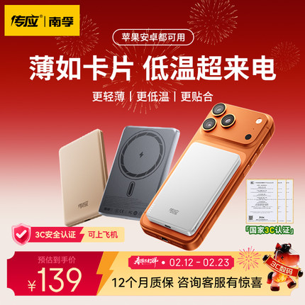 【充电宝3C认证】南孚传应充电宝可上飞机政府补贴超薄磁吸无线金属外壳适用iphone16pro苹果17专用magsafe