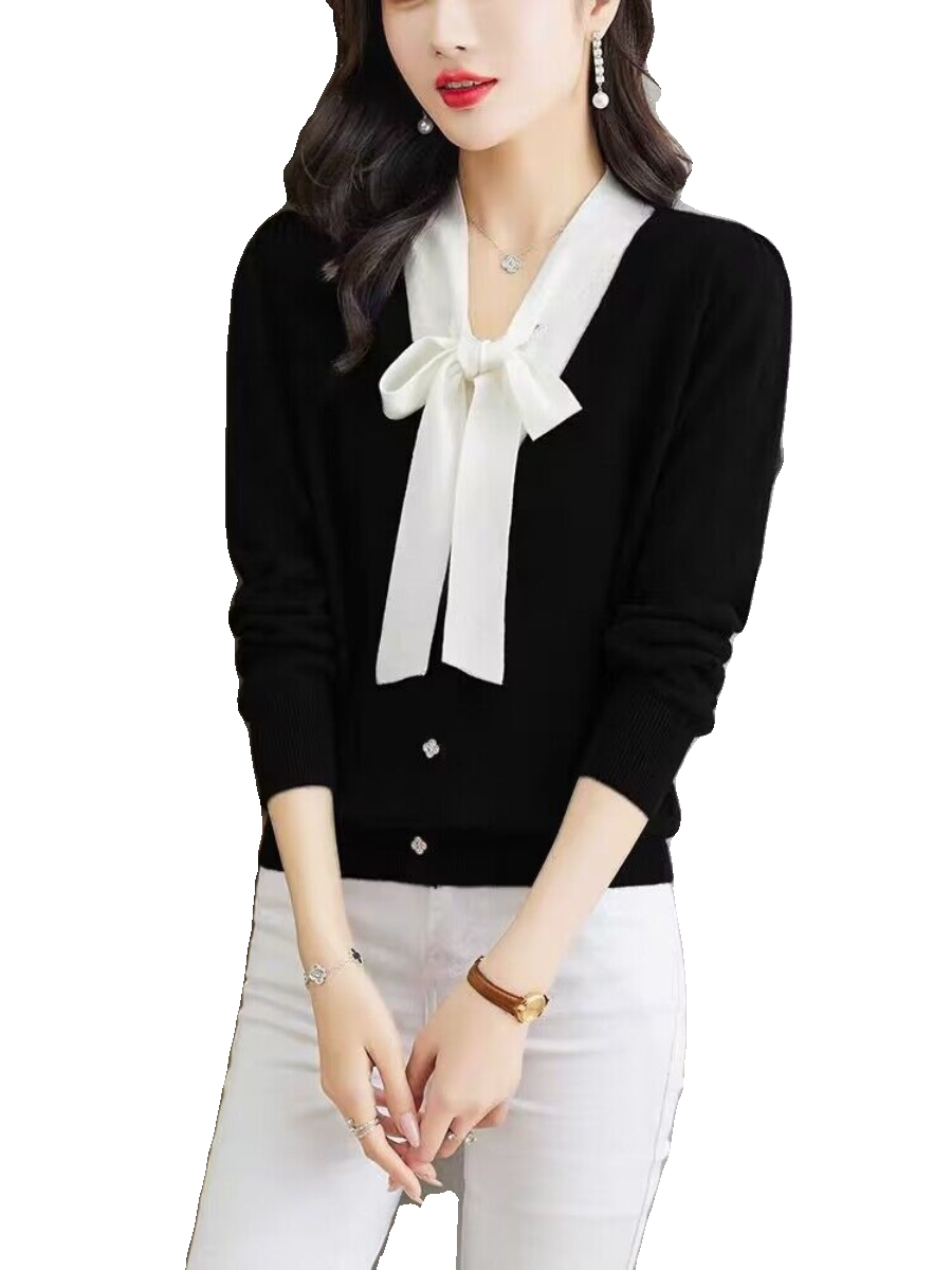白领哥弟新新款2025春蝴蝶结假两件内搭薄毛衣打底羊毛针织衫女
