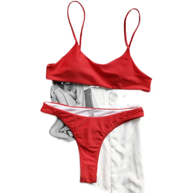 2021夏季纯色分体泳衣镂空bikini丁字裤超小比基尼沙滩海边泳装