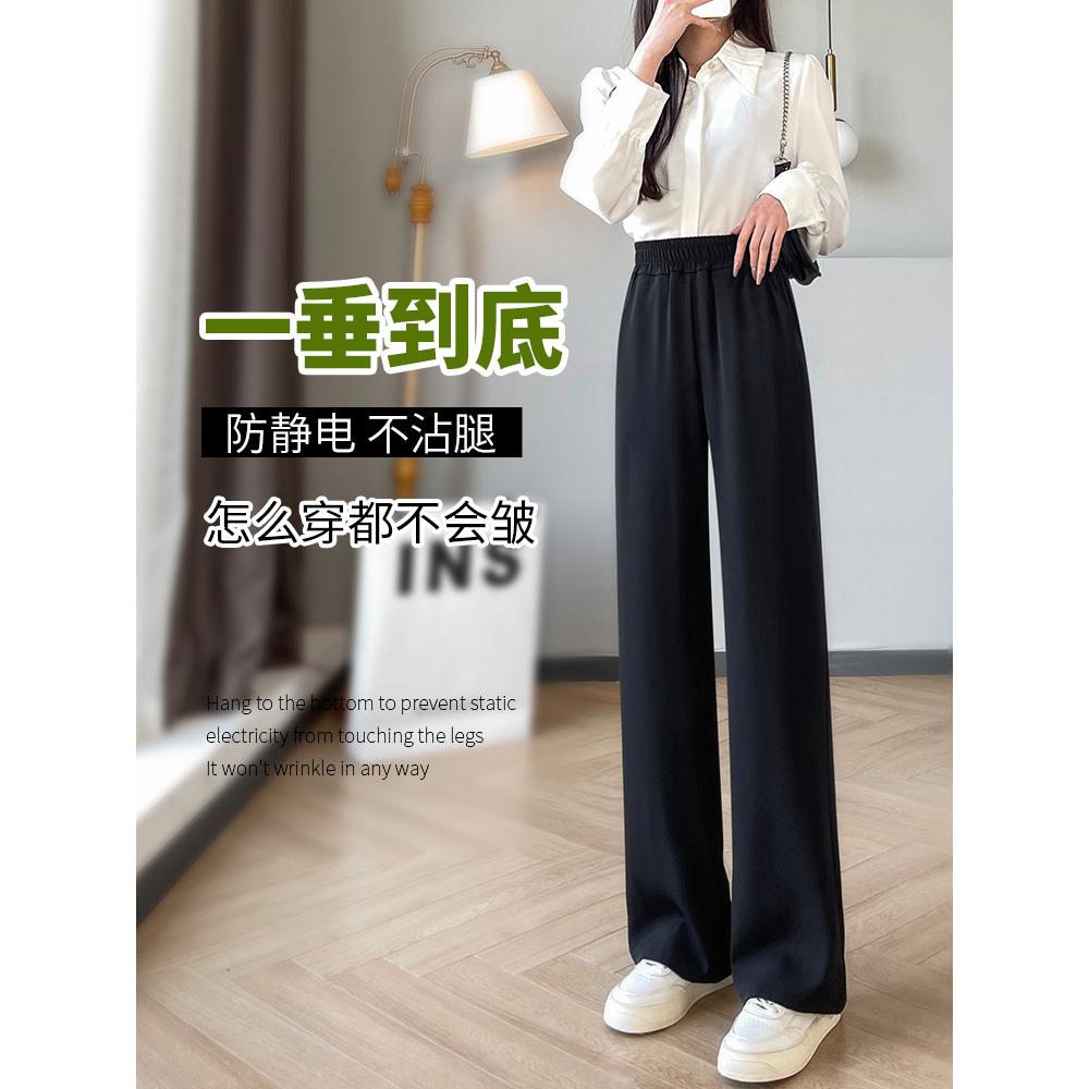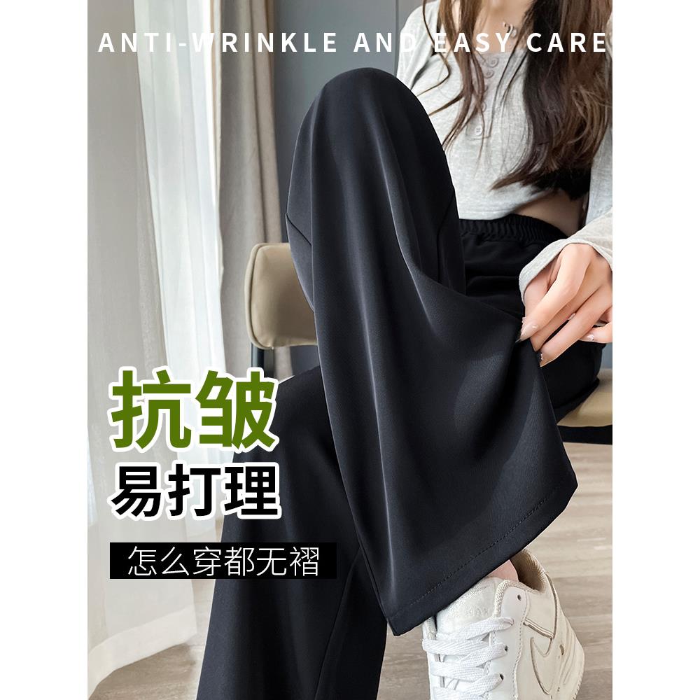 2025新款韩版西装阔腿裤女春秋小个子高腰宽松休闲显瘦黑色窄版拖