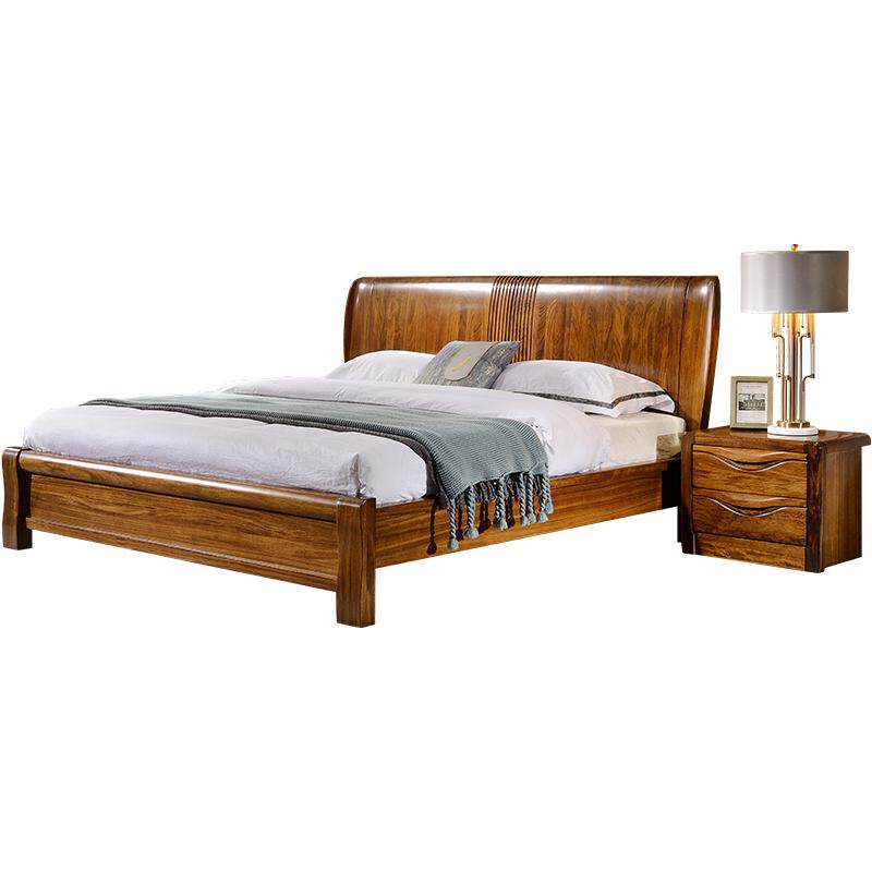 乌金木床全实木现代中式主卧1.8米双人床抽屉箱体床婚床高端家具