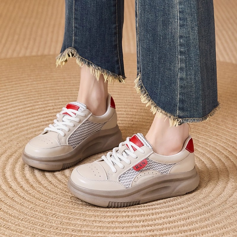 品牌特价厚底小白鞋女2025新款网面透气运动休闲鞋舒适软底阿甘鞋