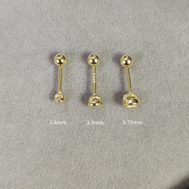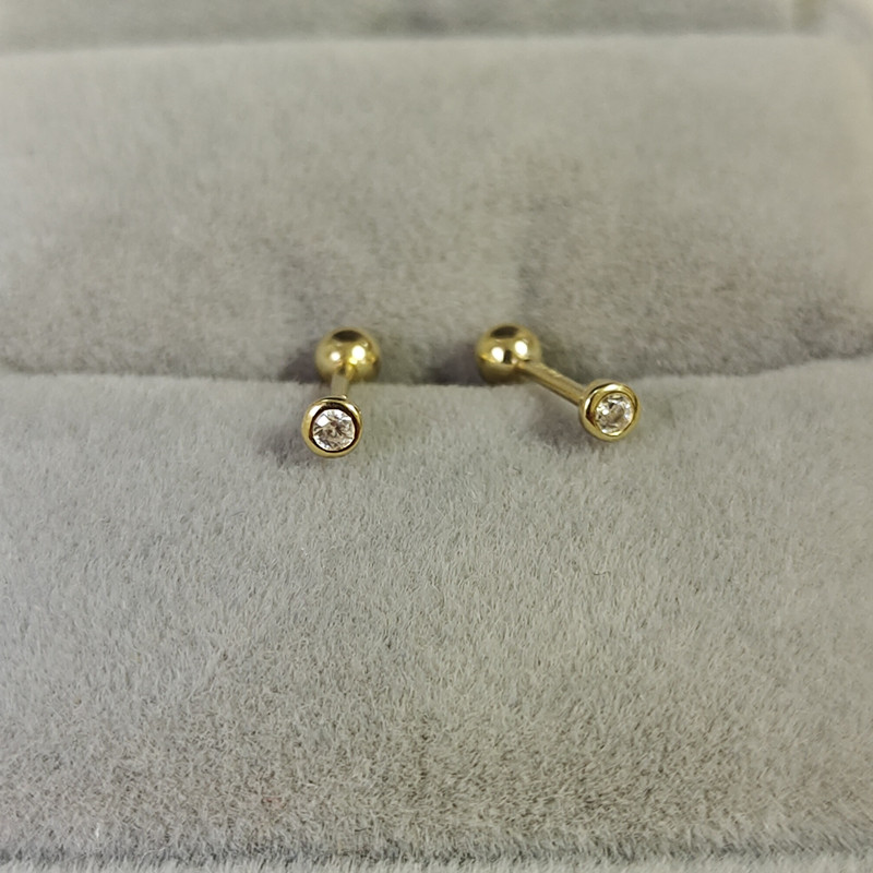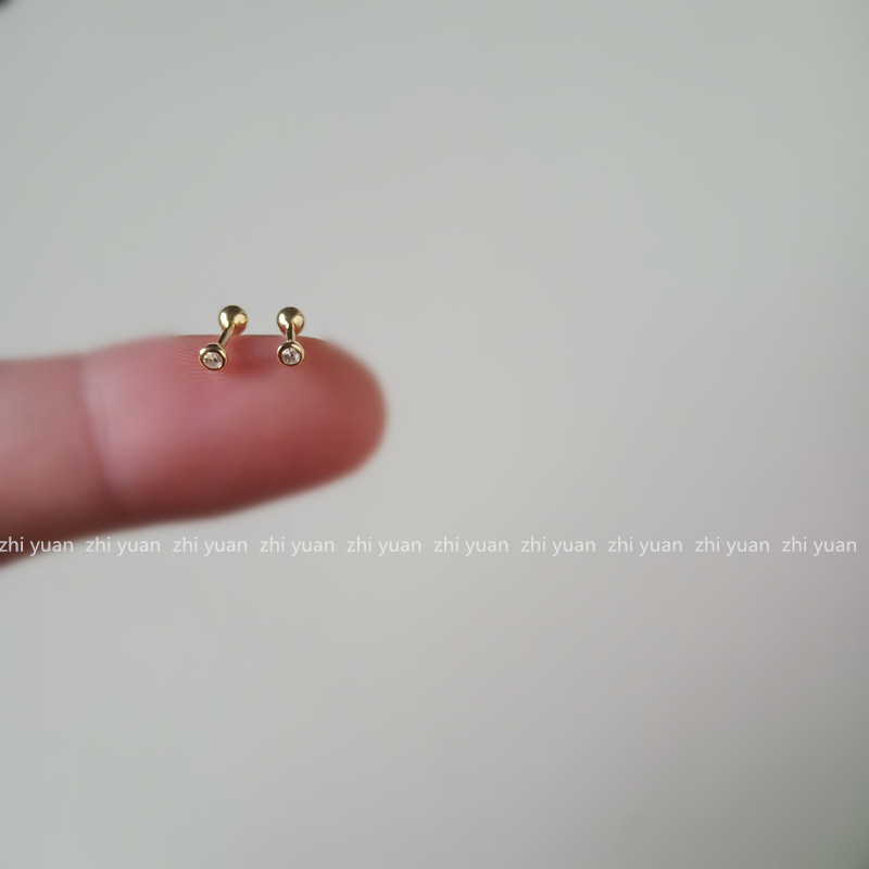 迷你小锆石包镶螺丝耳钉925纯银镀14k金多耳洞小耳骨钉可叠戴免摘