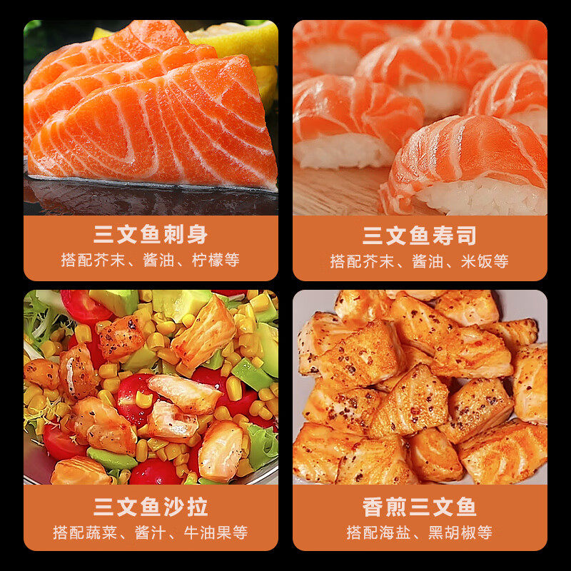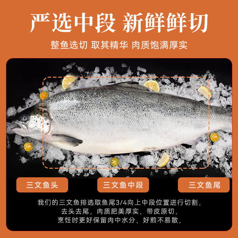 进口挪威三文鱼中段新鲜鱼腩生鱼片刺身冰鲜海鲜即食现切拼盘辅食