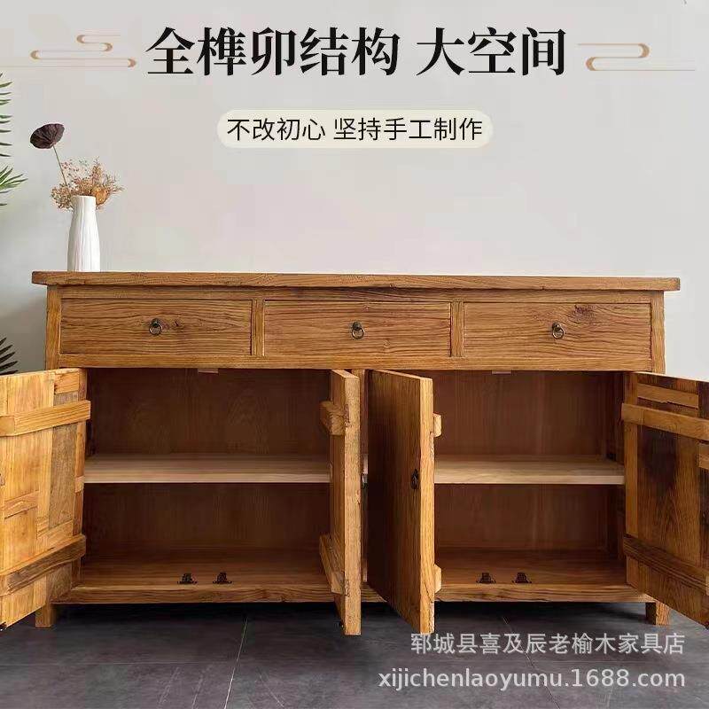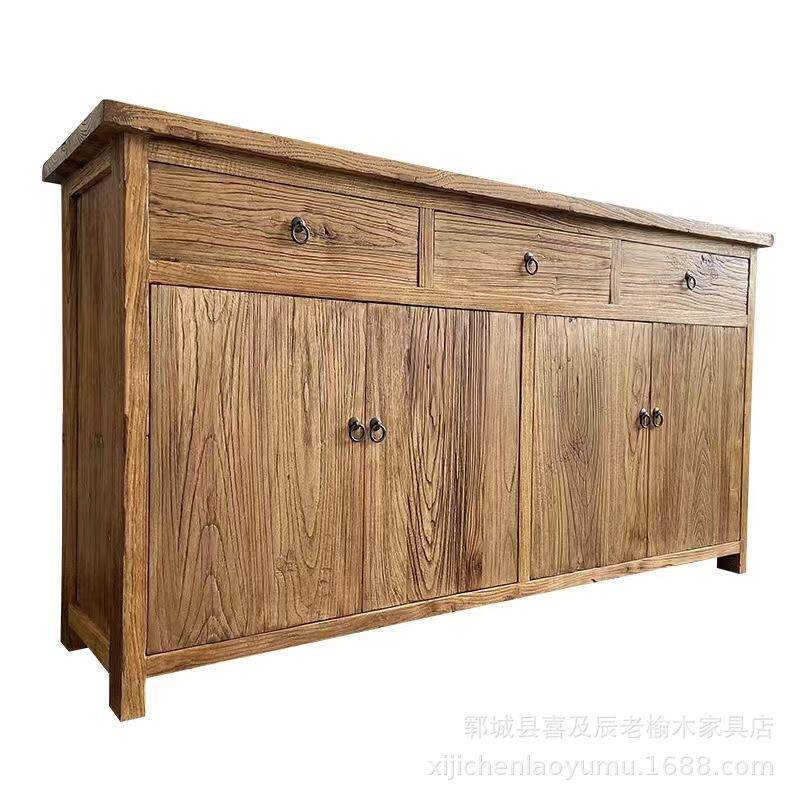 老榆木餐边柜全实木客厅储物柜家用鞋柜榆木斗柜实木茶水柜储物柜