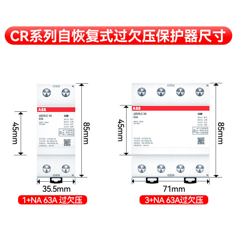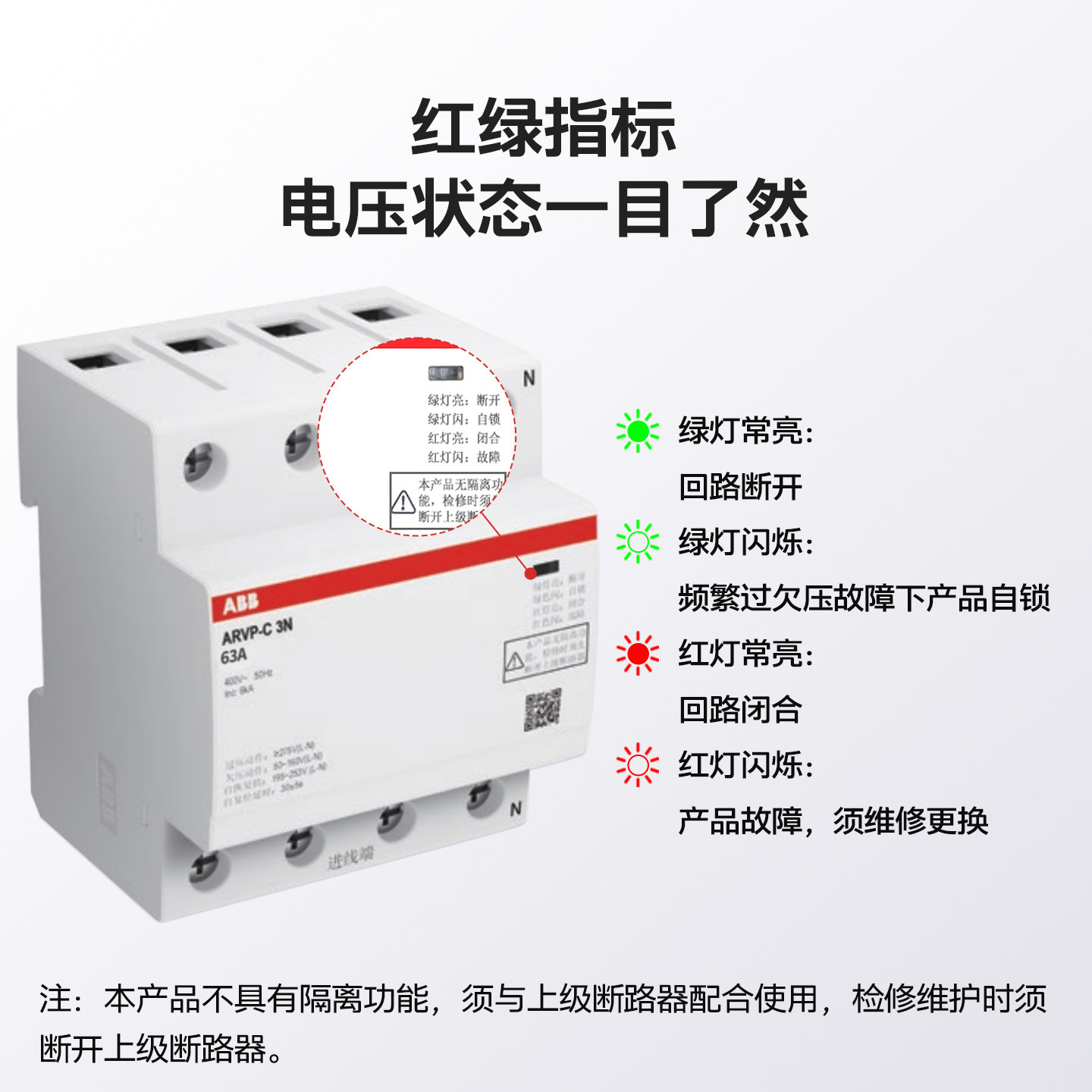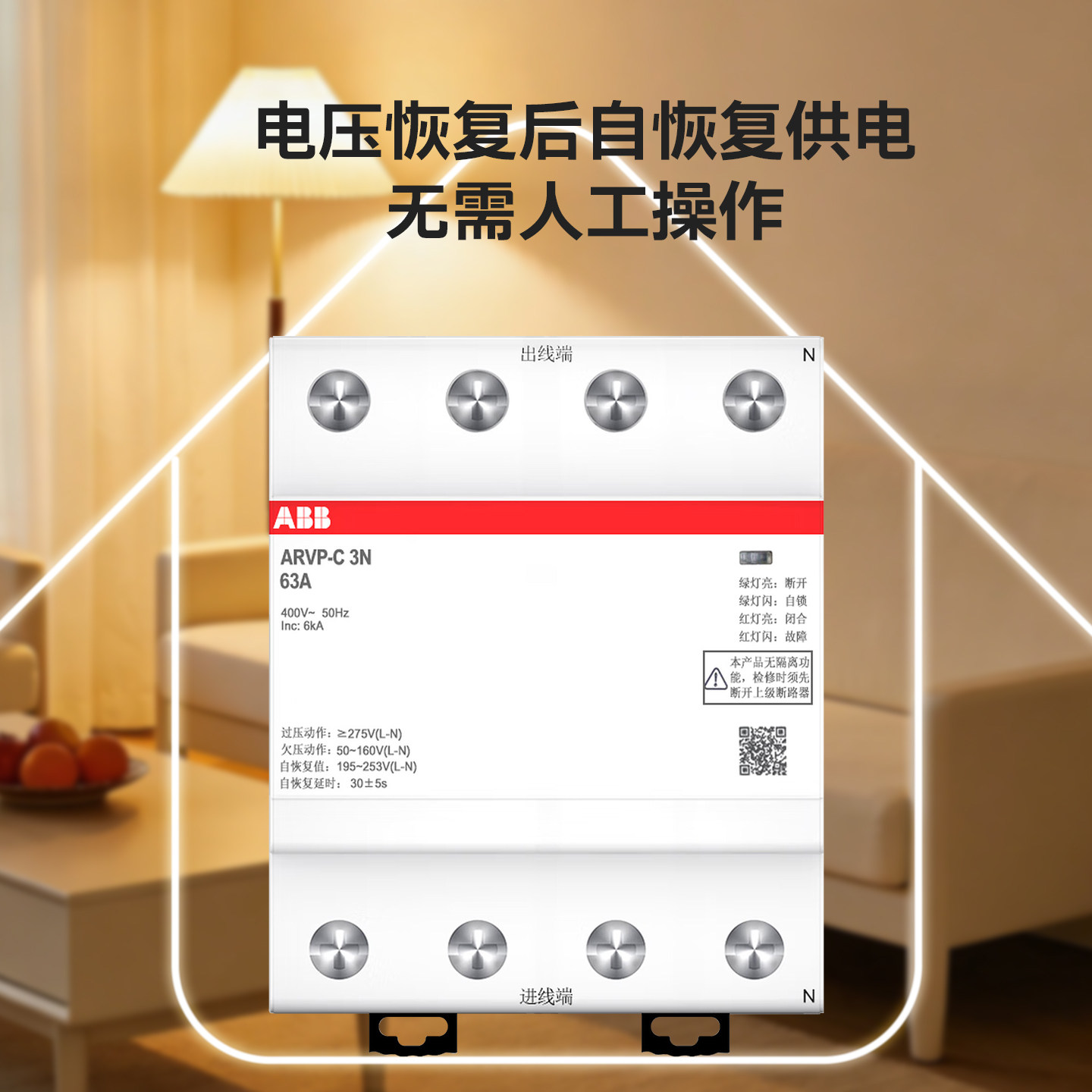 ABB ARVR-C 自复式1P+N 230V 3P+N 400V 63A家用过欠压保护器