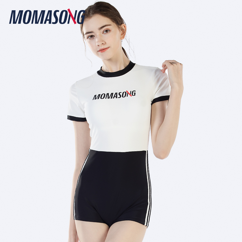 Momasong泳衣女士夏保守遮肚显瘦新款泡温泉度假连体专业训练泳装
