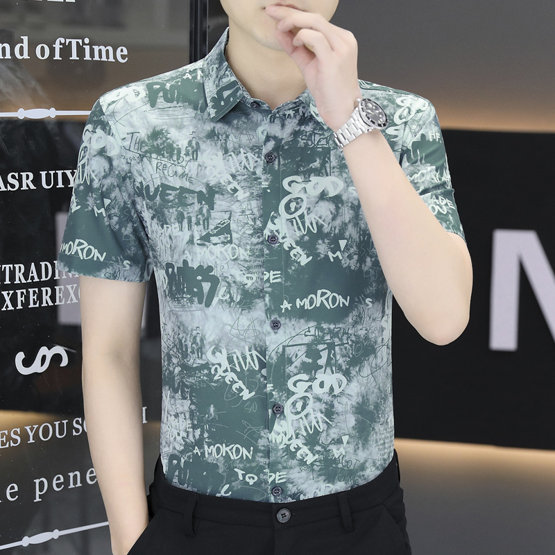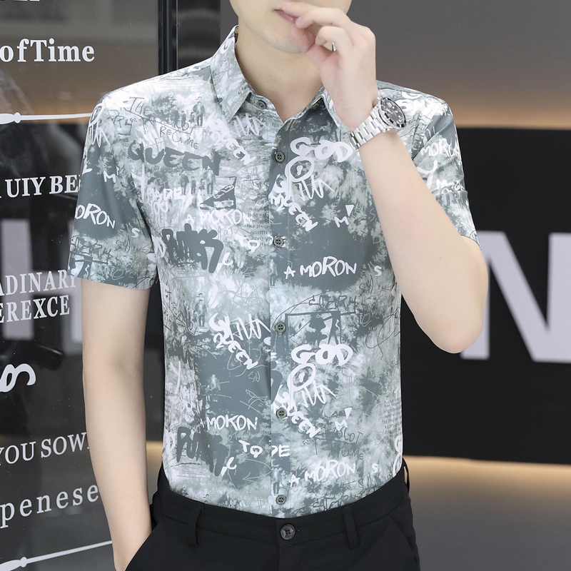 夏季冰丝短袖衬衫潮流帅气男衬衣