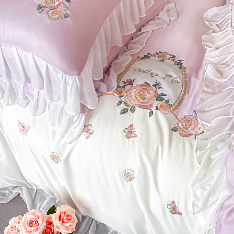 夏季轻奢唯美天丝四件套公主风荷叶花边被套床笠款莱赛尔床上用品