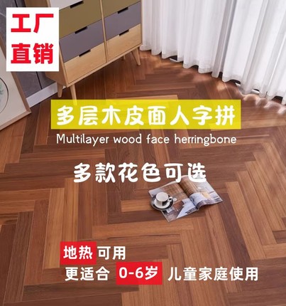 欧派新三层整芯油漆面人字拼橡木柚木黑胡桃灰色柚奶油风工厂直销