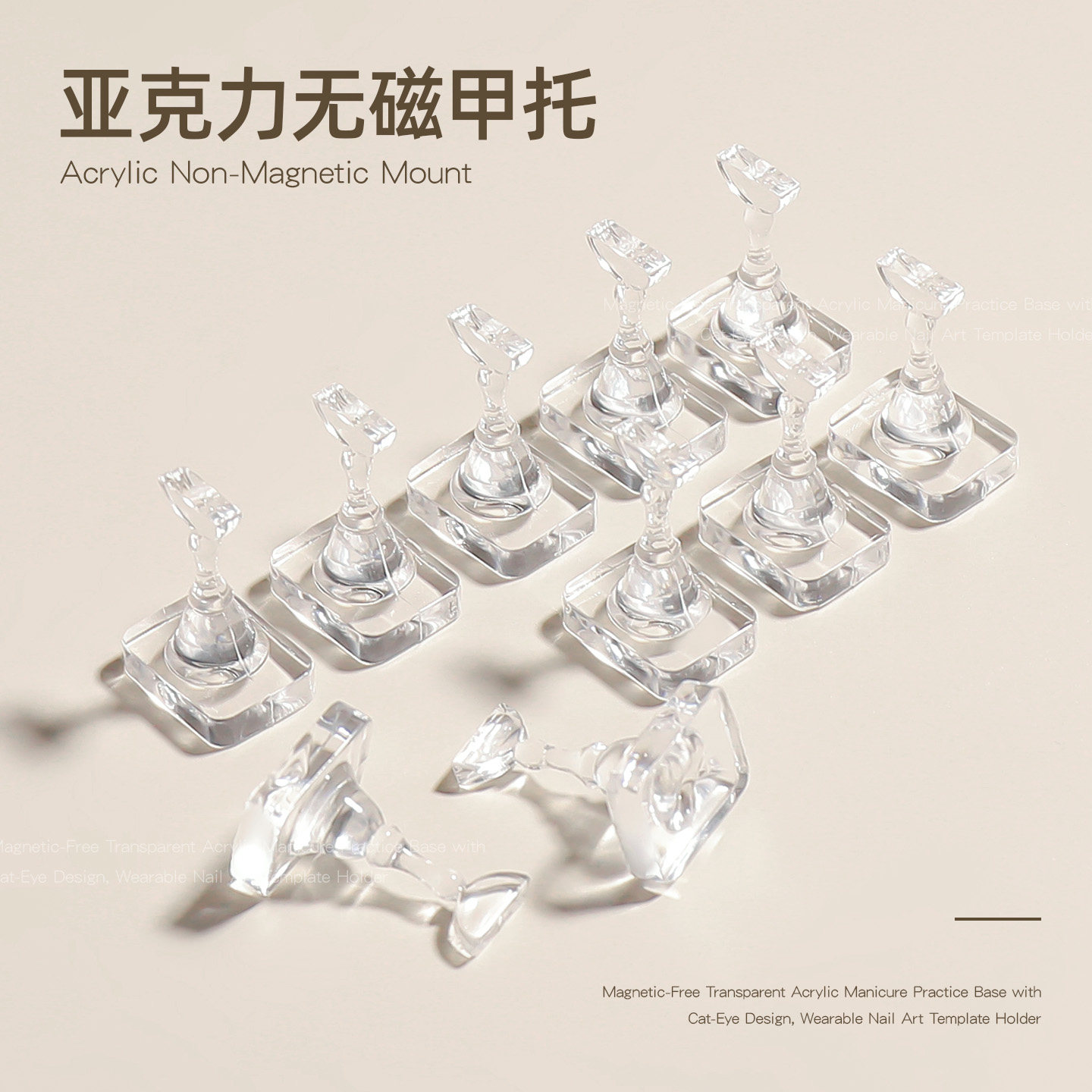 亚克力无磁甲托透明美甲工具品固定甲片托盘美甲用底座练习收纳