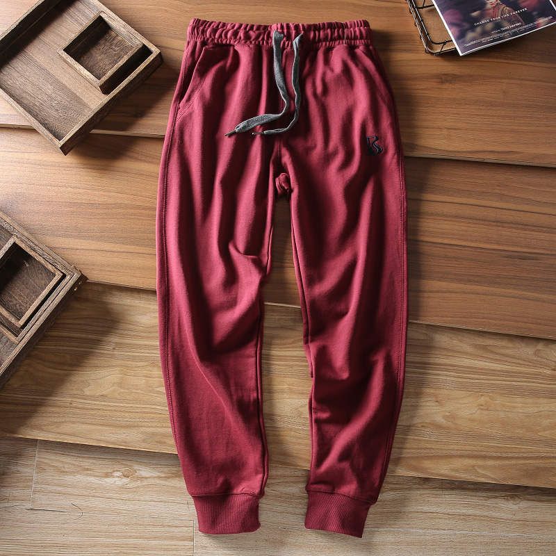 秋季新款男士全棉毛圈纯色松紧腰束口运动休闲百搭长裤卫裤可情侣