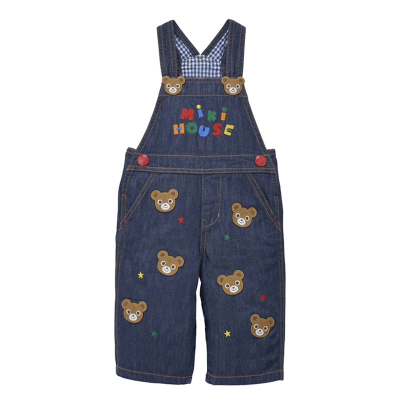 miki日系童装秋季男女儿童宝宝熊兔刺绣纯棉牛仔背带裤长裤七分裤