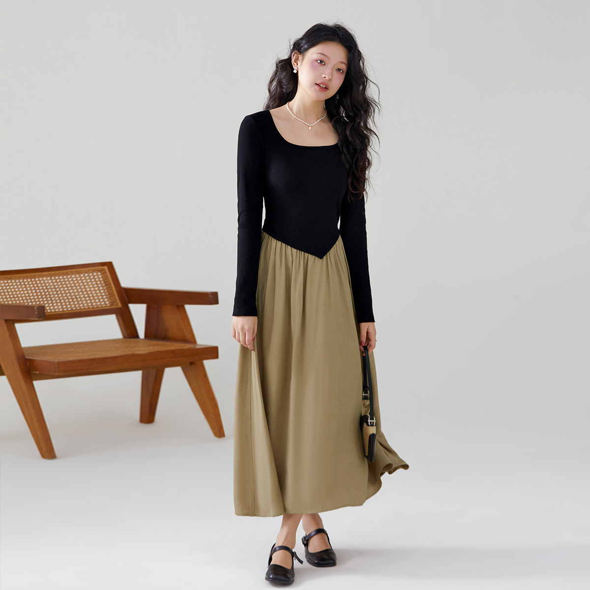 【2025秋季新款】撞色针织拼接连衣裙女士高级感收腰法式长裙
