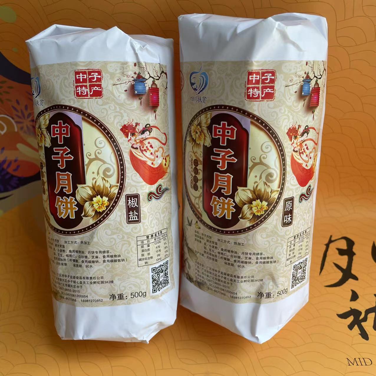 广元中子月饼花生芝麻核桃原味椒盐手工五仁脆皮月饼四川老式纸筒