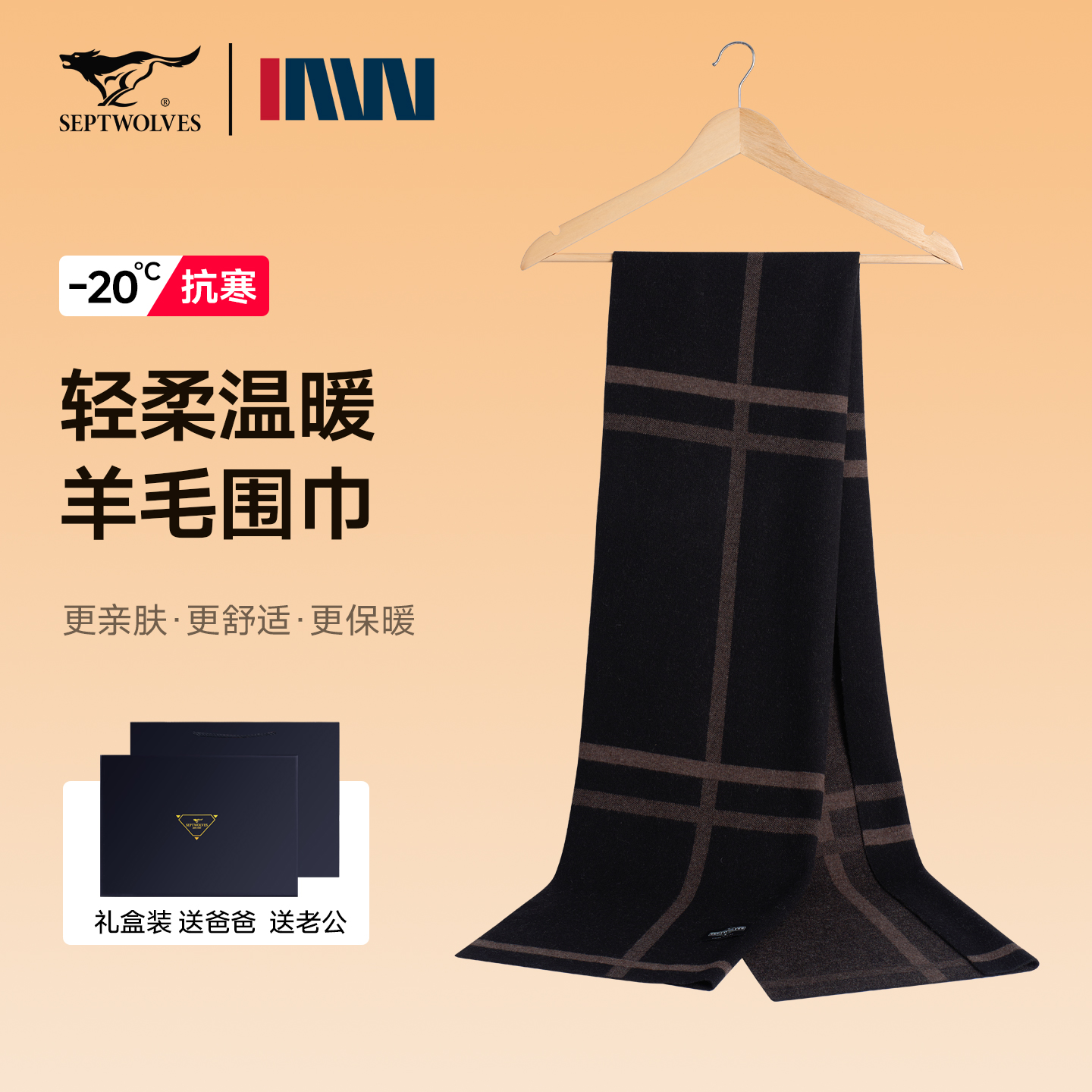 七匹狼男士围巾秋冬季保暖100%全羊毛围脖2025新款送男友生日礼物