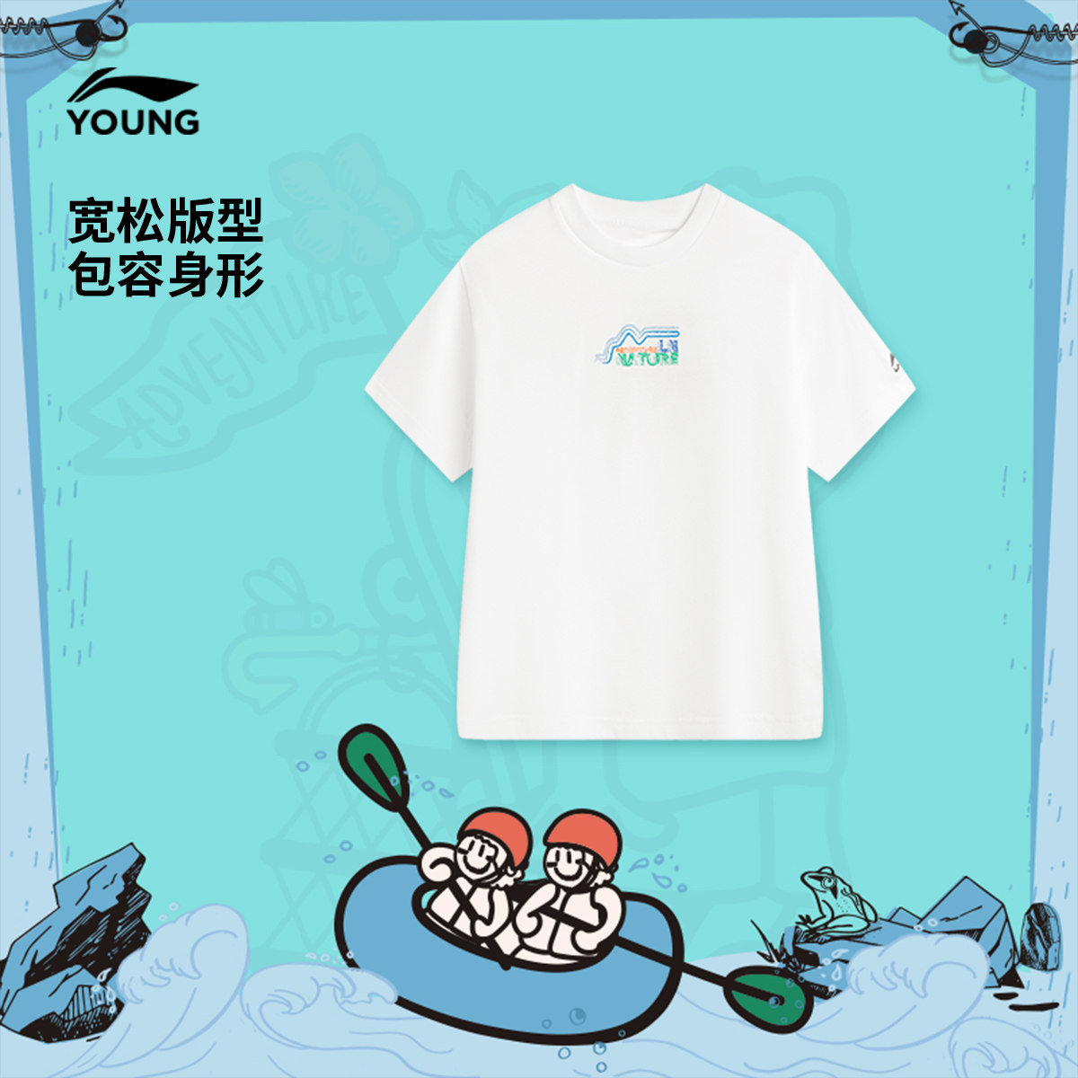 商场同款|李宁儿童速干吸湿排汗户外短袖T恤男童装女中大童运动服