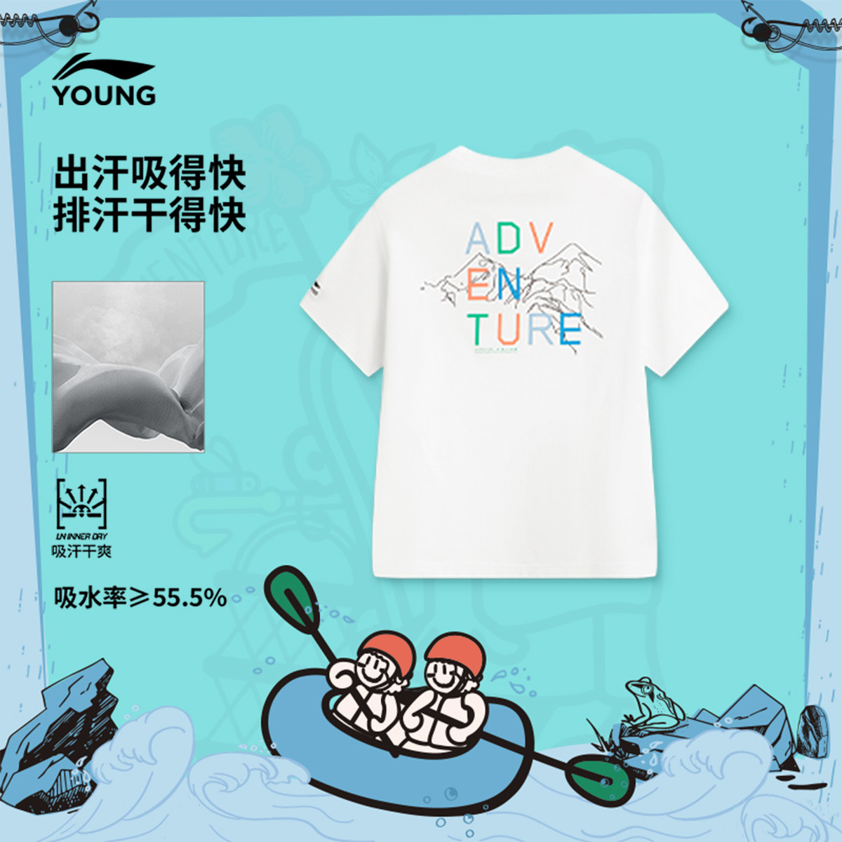 李宁儿童速干排汗户外短袖T恤