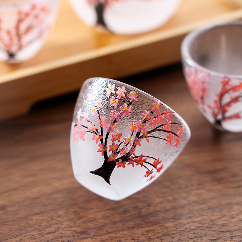 ins樱花玻璃清酒壶清酒杯酒具套装家用烫酒壶一口杯小酒杯酒盅