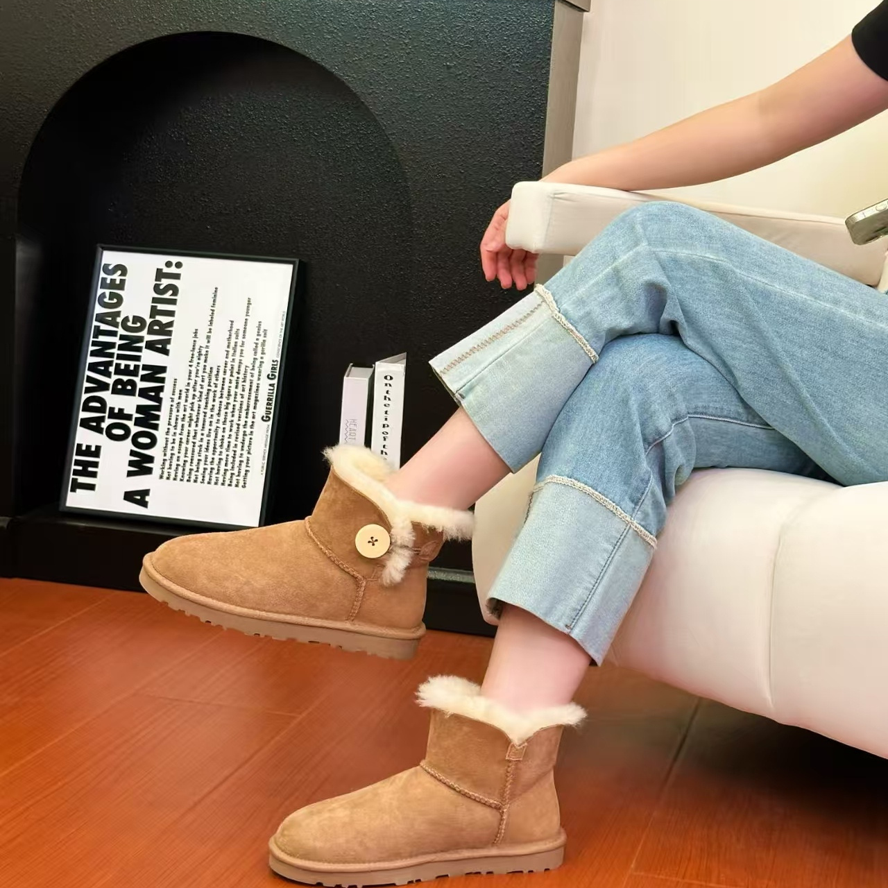 3352木扣短筒女靴桑坡村2025新款羊皮毛一体时尚雪地靴女加厚保暖
