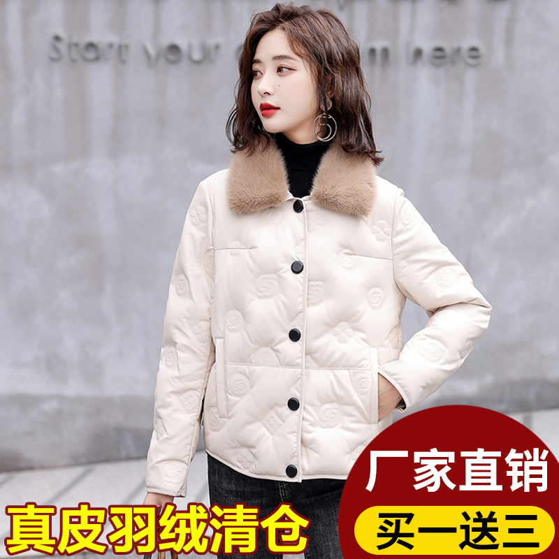 真皮羽绒服女短款2025冬新款海宁绵羊皮水貂毛皮草小个子皮衣外套