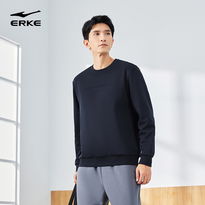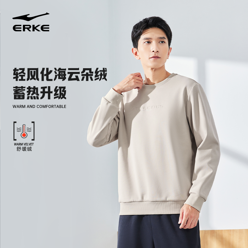鸿星尔克卫衣男2025春秋新款男士运动圆领套头衫长袖加绒上衣男装