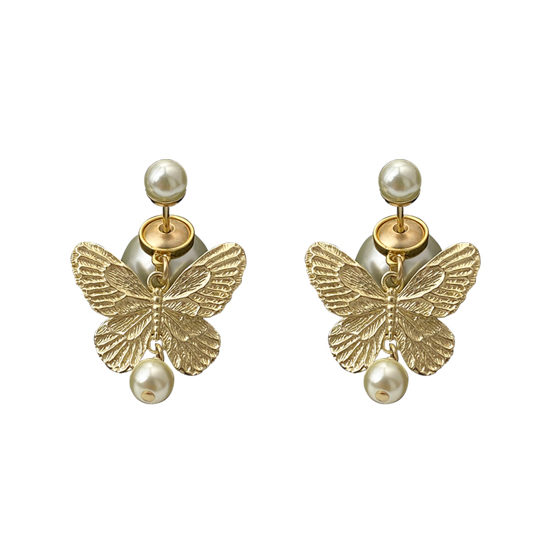 奥米迪奥金属蝴蝶吊坠珍珠耳钉大小珍珠气质轻奢耳饰女耳环法式