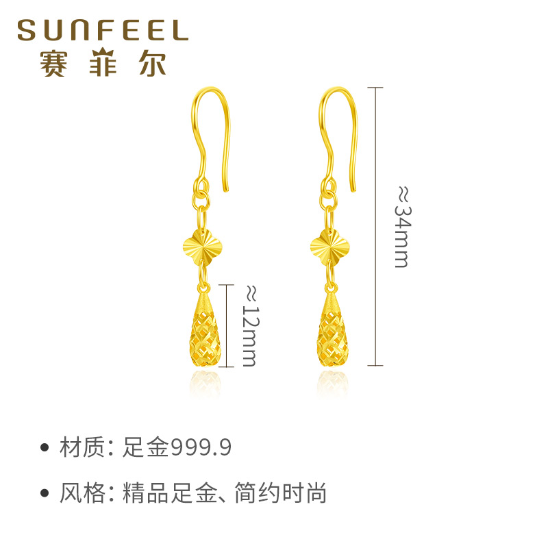 赛菲尔足金999.9水滴耳吊