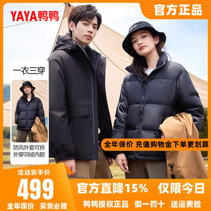 鸭鸭羽绒服男冬季两件套羽绒内胆可脱卸一衣三穿