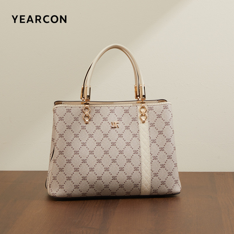 意尔康女包妈妈包新款手提包质感老花托特包百搭单肩包休闲斜挎包