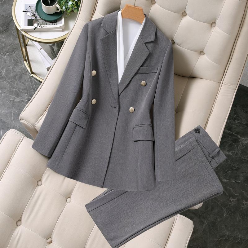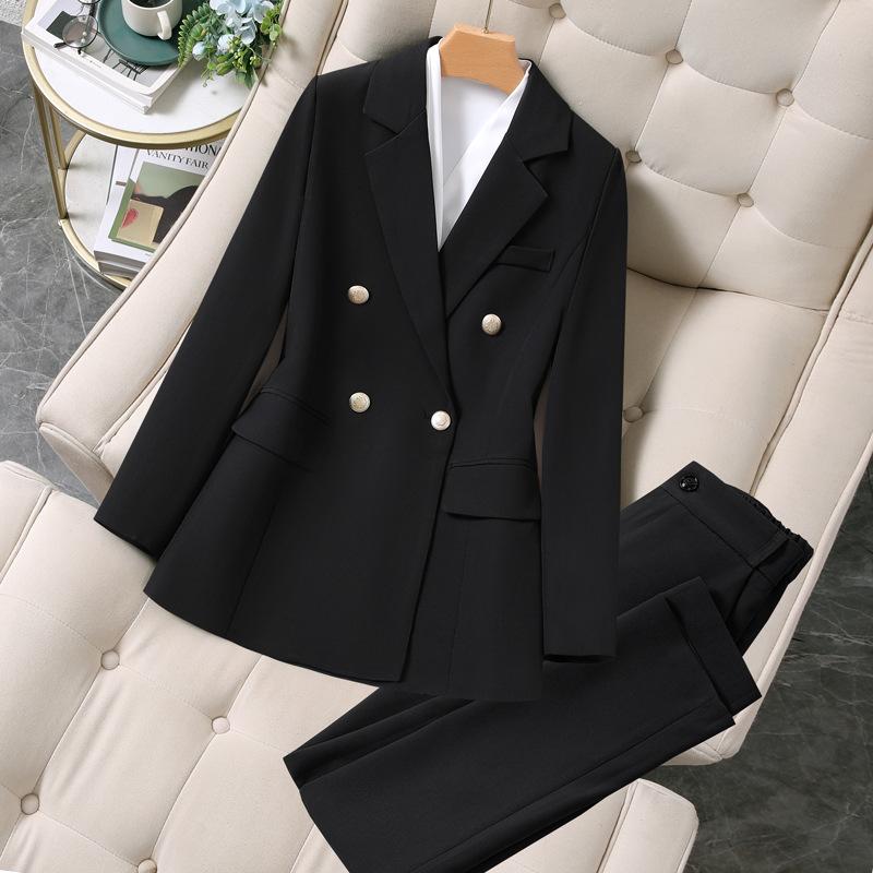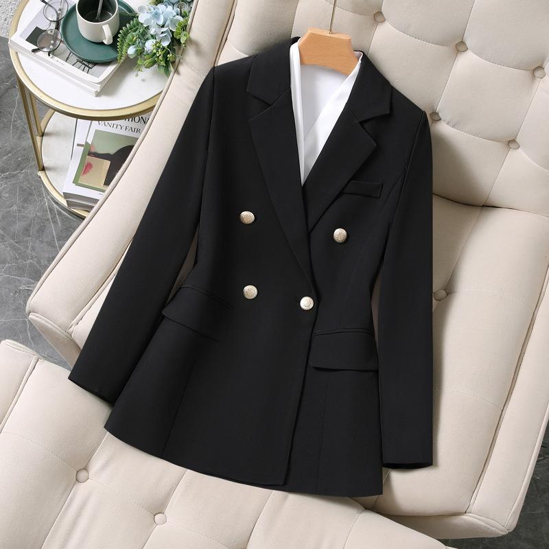 大码高级感藏青色职业西装外套女胖mm春新款面试正装工作西服套装