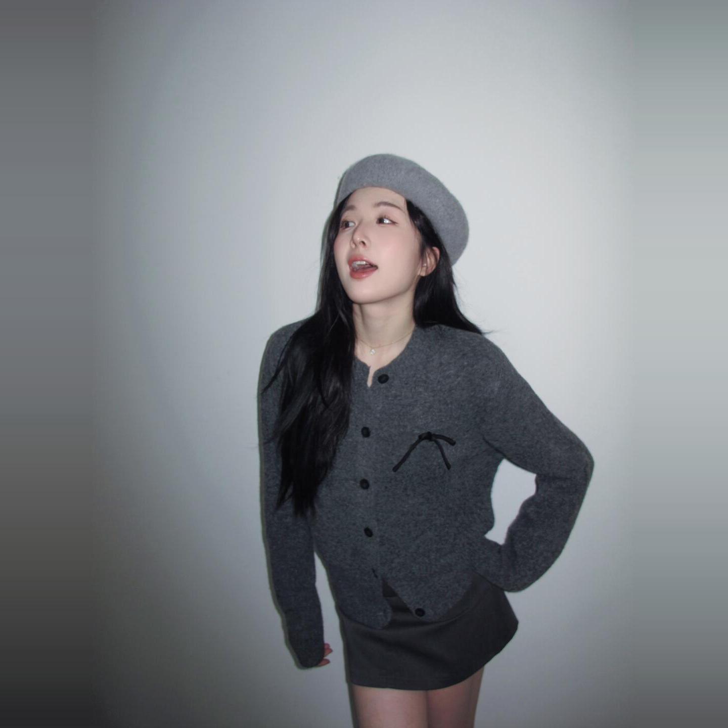 韩系蝴蝶结灰色毛衣外套女秋冬2025春新款宽松慵懒风针织开衫上衣