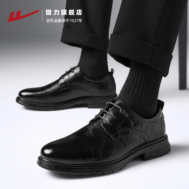 回力皮鞋男款2025新款黑色男士英伦商务软底休闲皮鞋结婚新郎鞋子
